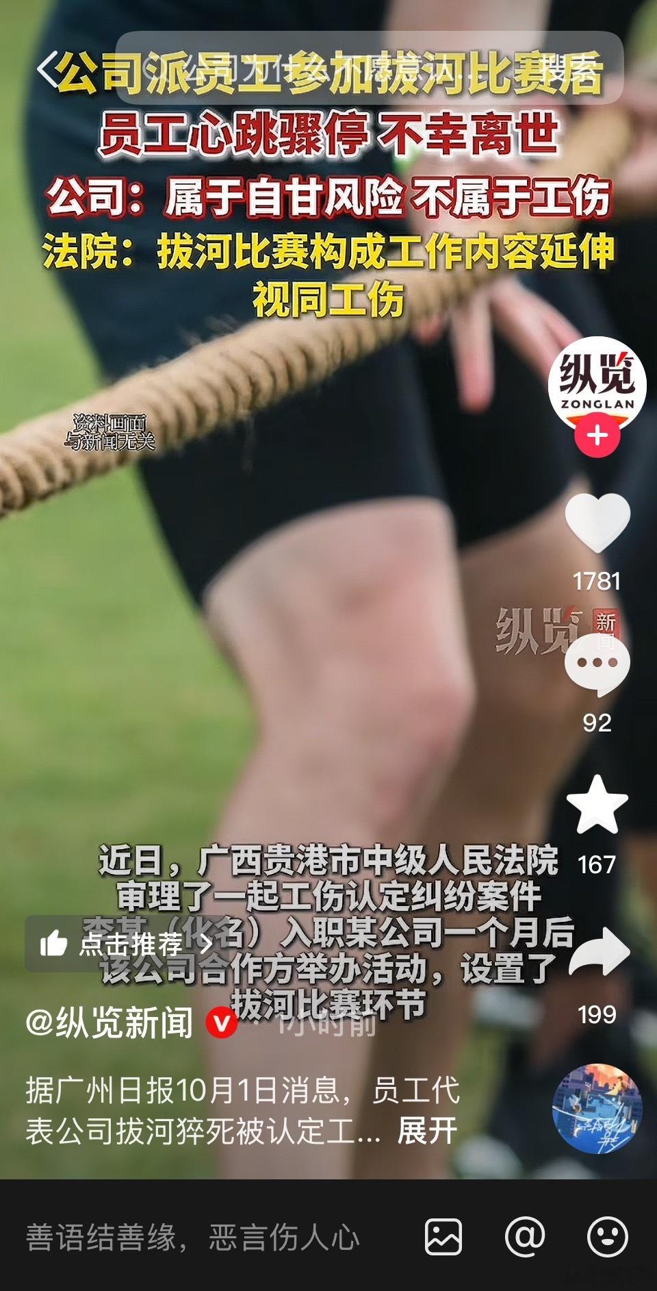 员工参加拔河比赛,猝了,心脏骤停,被判为工伤。