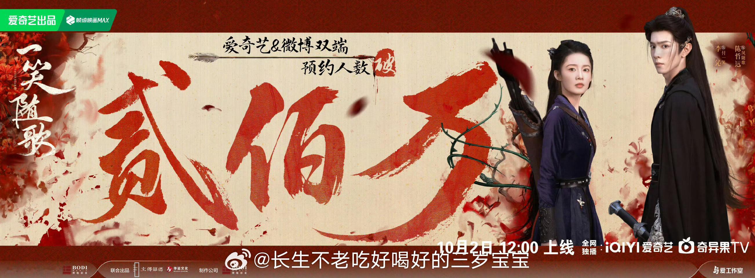 一笑随歌预约人数破200万破200万啦!一边看付一笑和凤随歌并肩作战,一边嗑糖,