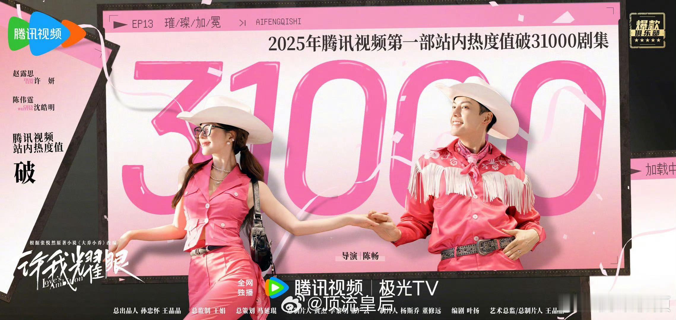 赵露思你真的过于争气了,许我耀眼腾讯视频站内热度值破𝟑𝟏𝟎𝟎𝟎!成为2025年🐧腾讯视频第一部站内热度值破31000剧集!