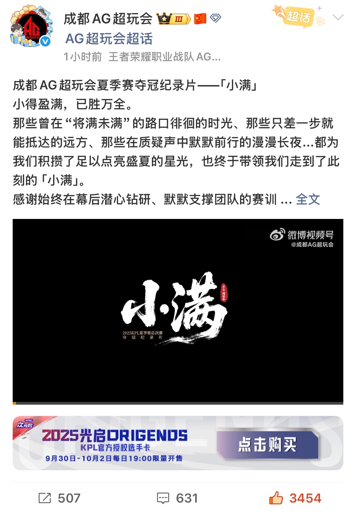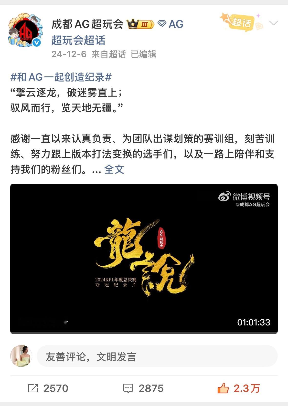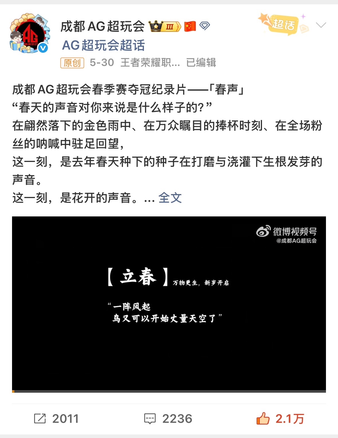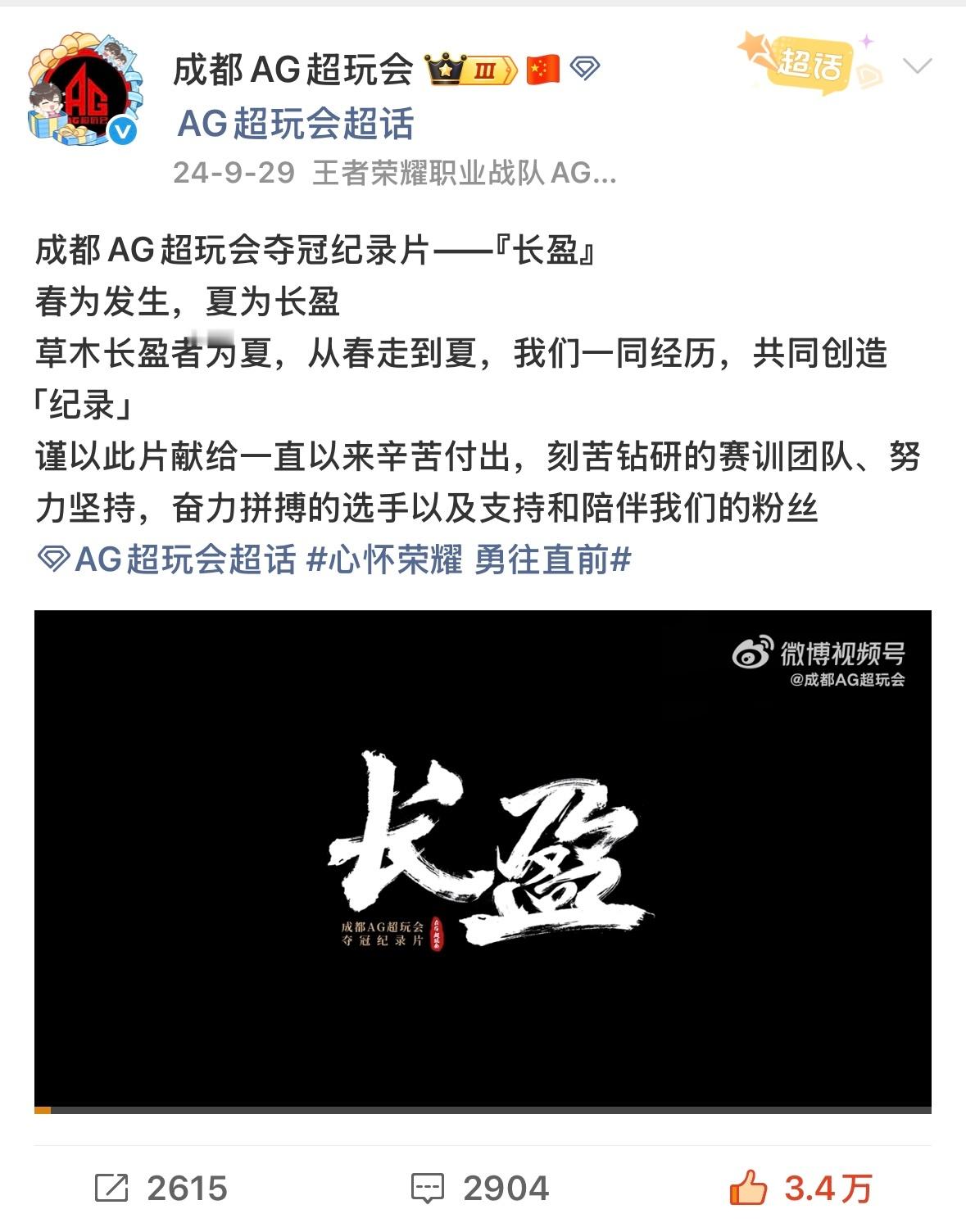 AG超玩会[超话]AG每一次的夺冠纪录片我都会再三观看因为我们所经历的种种