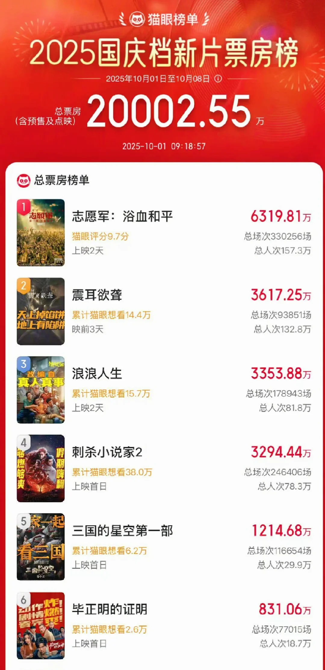 国庆档票房前3国庆档票房前3!!你喜欢哪一部??​​​