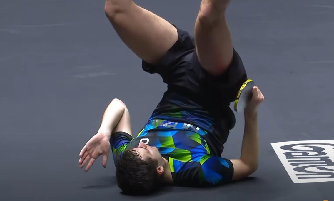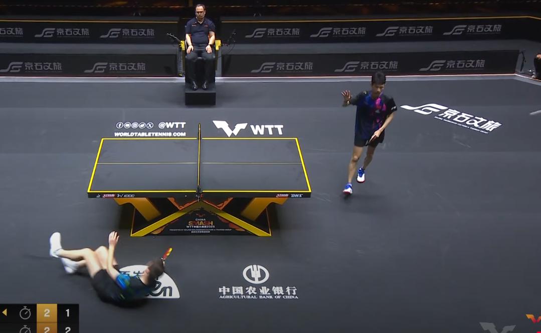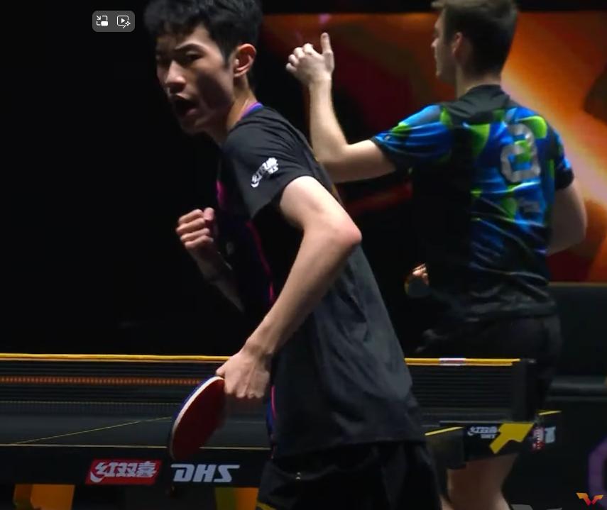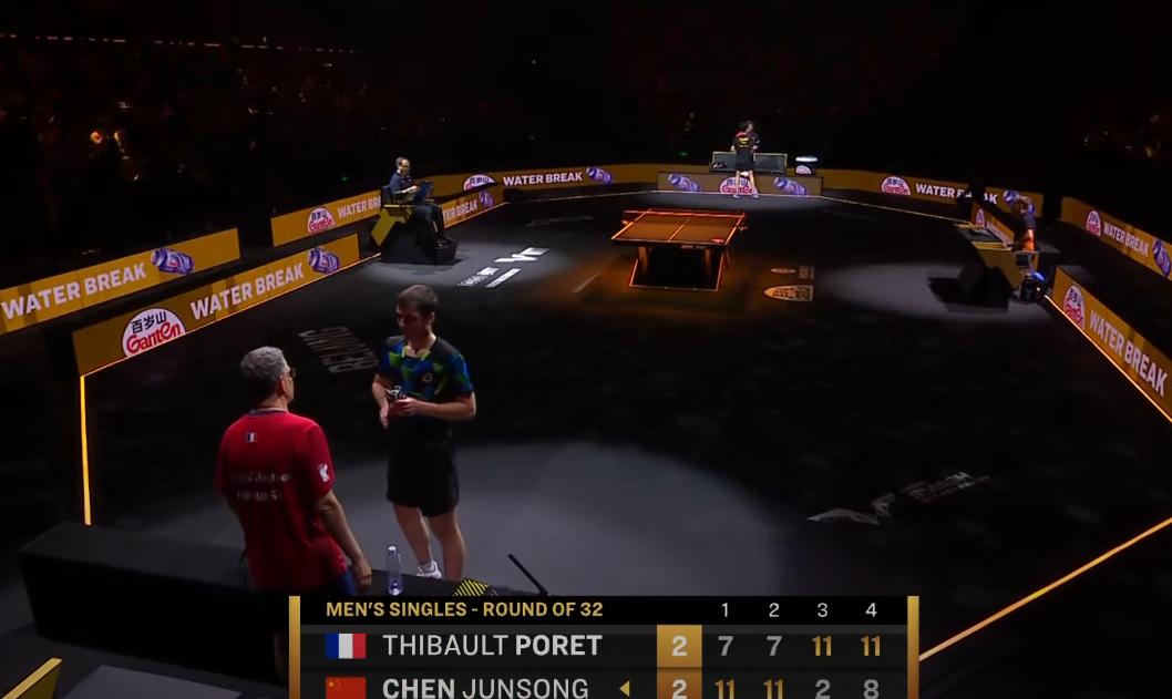 陈俊松黑马继续,3:2拿下博雷特。 陈俊松反手生胶打法, 雷柏特不太适应, 小陈连胜两局。 三四局雷柏特熟悉了, 小陈有些保守, 被扳回两局 打成了2:2平。 第五局 双方都拼了, 雷柏特为了抢救一个触网球, 摔倒了。 雷柏特不错, 人家没用医疗暂停。 最后陈俊松11:4拿下