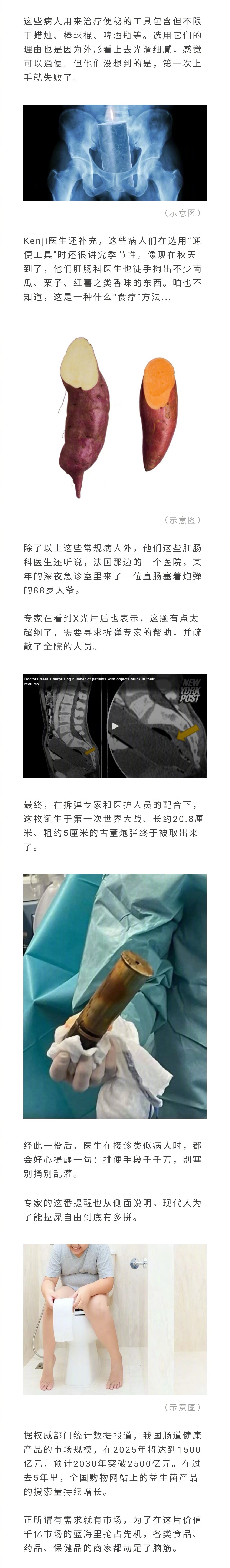 美国肛肠科医生讲述用菠萝、炮弹等不当工具治便秘,导致菊花被堵的离奇病例,并指出现代人排便需求竟催生千亿健康市场... ​​​