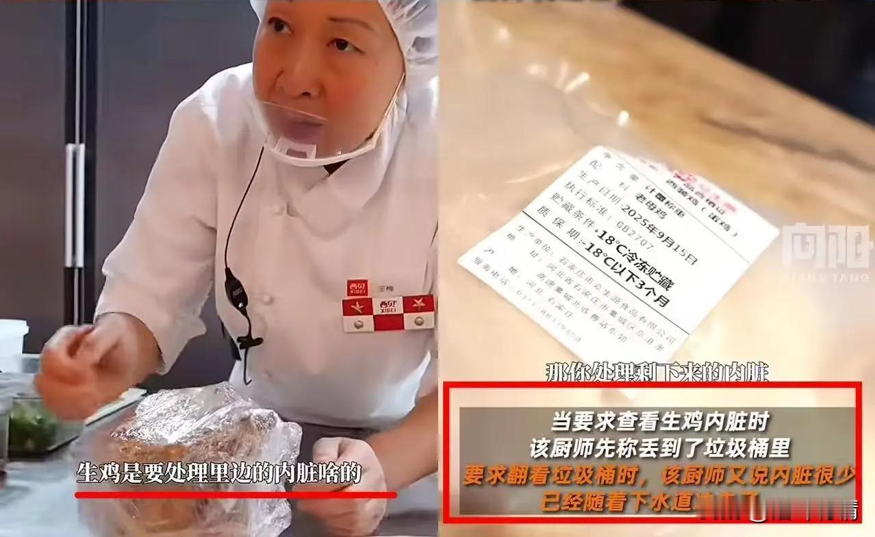 西贝郑州店又开始忽悠记者了, 西贝麻椒鸡表示改在门店现卤了, 记者问厨师大妈鸡是新鲜的吗? 厨师大妈犹豫了一下表示是新鲜的, 早上还处理了内脏呢? 厨师大妈说是生鸡的, 记者问厨师大妈那内脏在哪里? 厨师大妈慌了, 表示内脏比较小都被水冲走了, 这不是胡说八道吗? 明明用的冷冻鸡哪来的内脏, 被记者追着问, 厨师大妈明显慌了, 你用冷冻鸡为啥非要骗人是新鲜的, 看来西贝还是没有学会真诚, 想必今天其他地方也有人去探访西贝吧!毕竟今天是西贝调整第一天, 大家对于西贝郑州店厨师大妈说用的新鲜鸡做椒麻鸡你信吗? 美食记 西贝道歉 西贝整改得怎么样了 西贝麻椒鸡