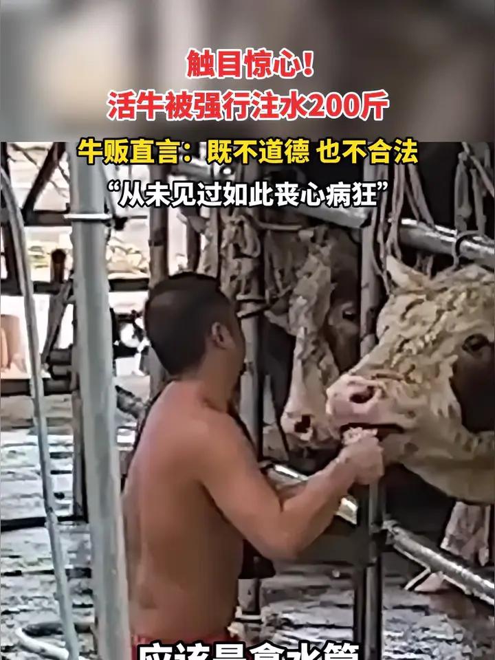 为何都骂给活牛注水的广西商贩? 真只是因为骗了钱吗?我看未必,这件事曝光出来后,大家气的不只是男子买牛被灌200斤 水的欺诈行为,也不是牛被强灌时的痛苦模样 是因为这些不明水质的水可能有致病菌 甚至有非法添加剂 最后都要被端上餐桌 这种既缺德又违法的事 真该好好查查 遇到了一定要保留证据举报 你们知道牛打水有多痛苦吗 我看过把牛头吊起来 把脖子上的动脉用大针扎进去往里挤水 能打三百斤 过程中牛一直痛苦的在叫流眼泪 牛的心脏能肿到五倍大 太惨了 说句实在话,看着都心疼,人性之贪婪,奸商太可恶了,为了点点利益、做人无底线,缺德至极,万物皆有灵性,迟早会遭报应的,希望监管部门严查重罚,严惩不贷