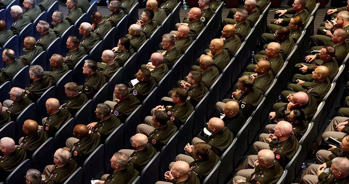 这位将军的表情会是想表达什么呢?当赫格塞斯在美军高级将领大会上对几百位将军进
