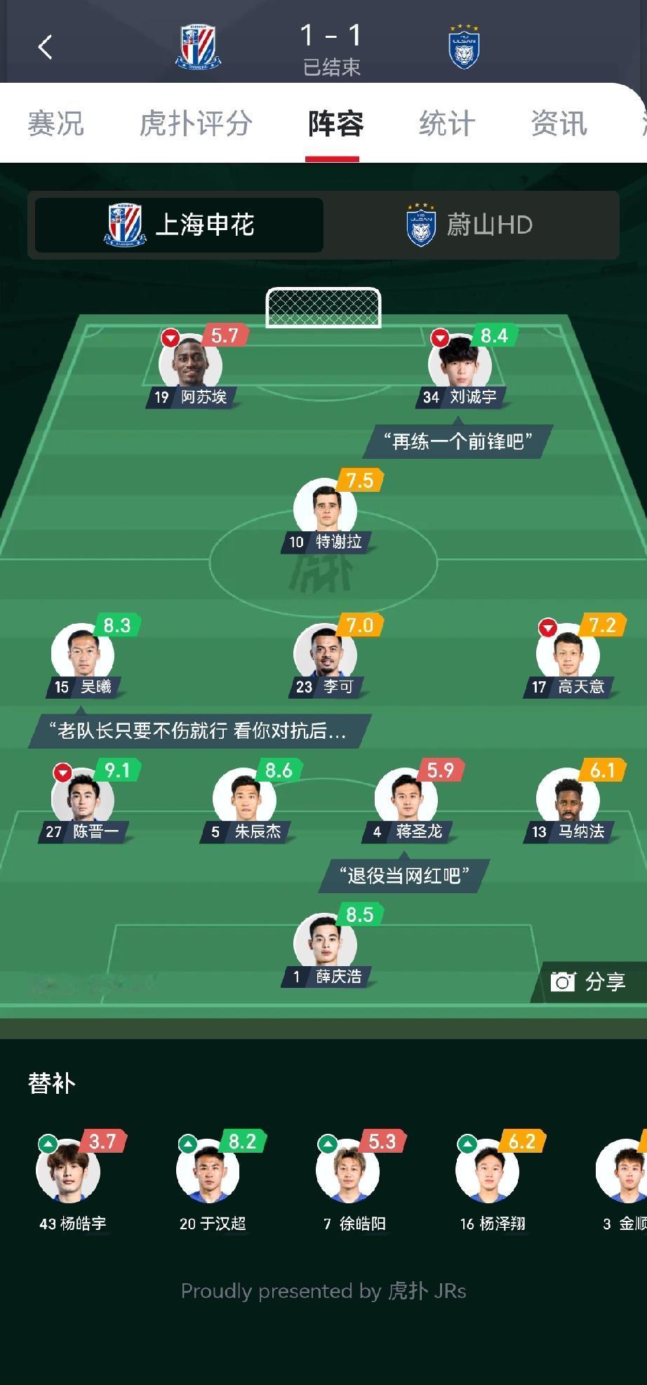 上海双雄就是不给力啊!你们就不能学学人家成都拿下三分吗? 不过有一说一申花这场虽