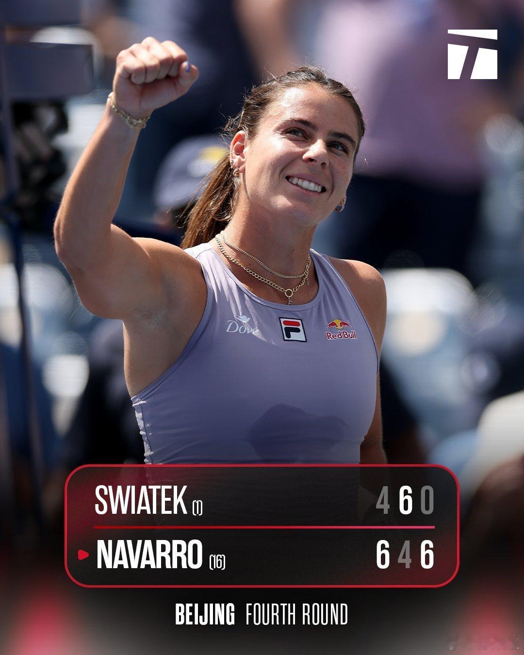 斯瓦泰克中网8连胜被终结,遭遇个人赛事历史首败,1000赛7连胜被终结(没包括对手赛前退赛一战),巡回赛6连胜止步,3战纳瓦罗首负对手。