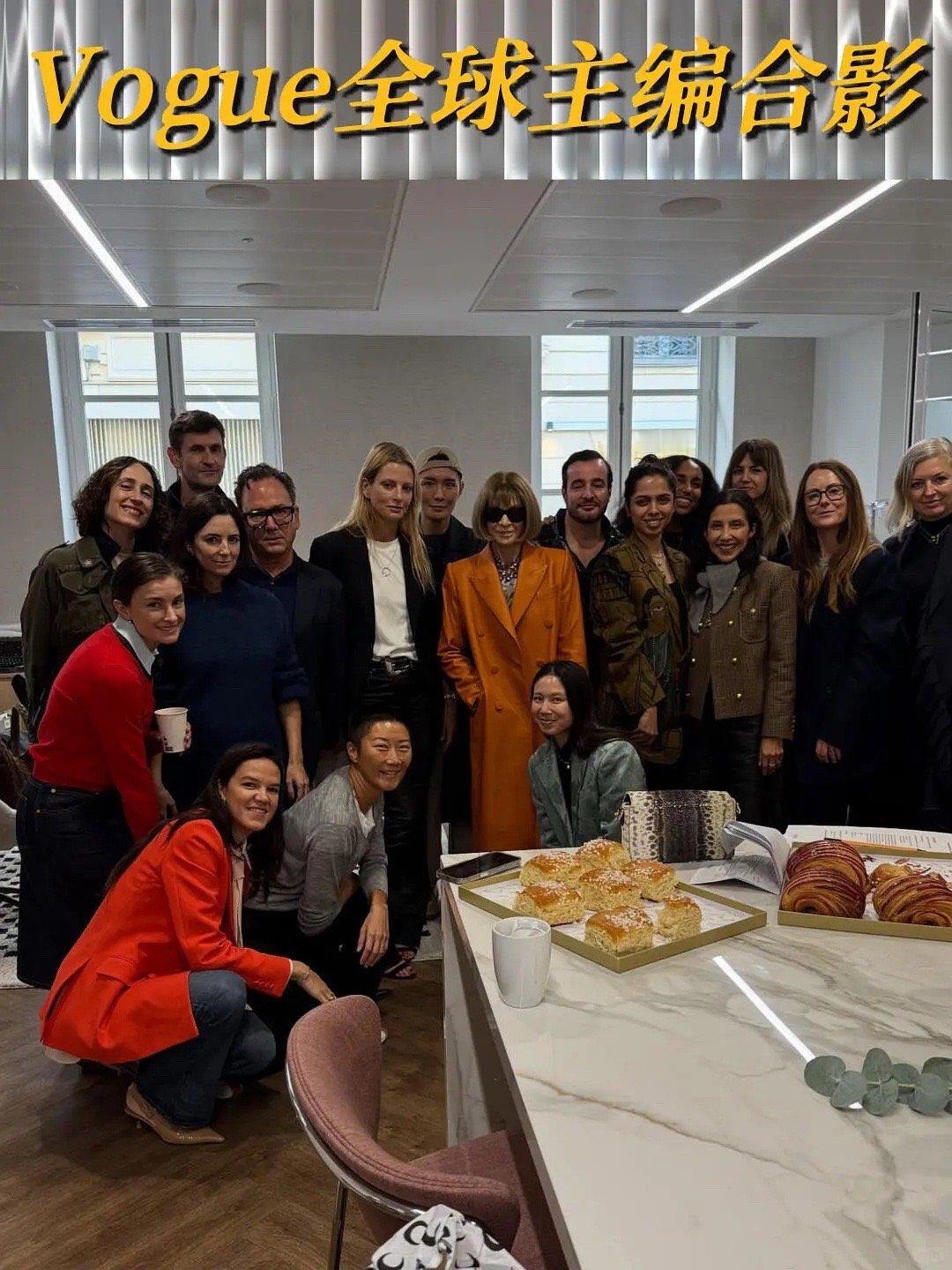 Vogue 全球主编合影,刘冲站大魔头身后