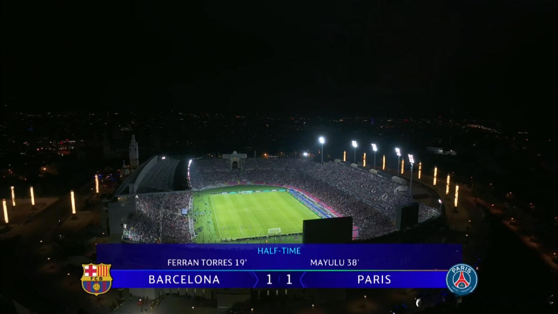 半场结束,巴萨暂1-1战平巴黎大伙如何评价上半场比赛[并不简单]巴萨vs巴黎圣