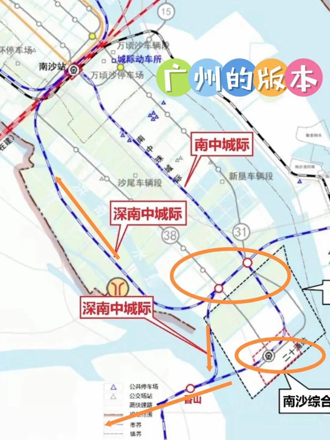 深圳正式宣布要推进深南中城际项目,深圳、南沙、中山三地15分钟互通!这可不是小打小闹,预估造价要超过260亿大洋呢!想想都让人心跳加速,是不是?! - 现在网上传得很火的,就是两个炫酷的线路版本,关键分歧就在广州南沙的选址上!两个方案都从宝安机场霸气出发,但接下来的走向,可就不太一样咯~ - 方案一:走南沙万顷沙海边,它会在万顷沙20涌设站,但一掠而过,径直下穿越洪奇沥水道,直达中山马鞍岛!优点是换乘超方便,和18号线无缝对接,但南沙的覆盖面很少! - 方案二:走18涌,南沙核心区域全覆盖!这条线不仅途经南沙港、龙穴岛,还能和广州的18号、31号、38号线各种换乘,然后还分岔去一路往中山,一路到南沙枢纽站! - 优点是南沙的辐射力最大,广深同城不是梦!但施工有点小挑战,因为18号南延的时候,18涌没预留站点呢... - 不过别担心,已经有了B计划!完全可以在31号和38号线相交后,还是拐去20涌站方向,这样既保证了18号线换乘方便,总里程也几乎没变!这样一来,南沙的小伙伴们既能享受便利,又不会错过任何精彩!