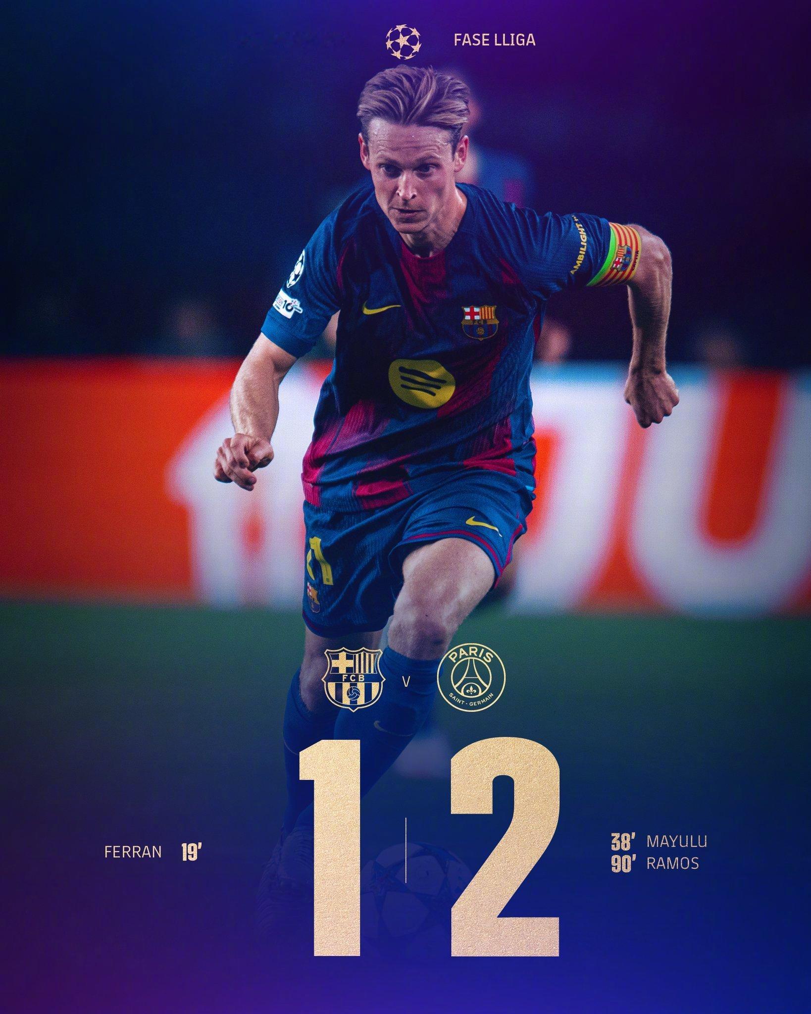 巴萨vs巴黎圣日耳曼全场比赛结束,巴萨在主场以1:2不敌巴黎。这是一场