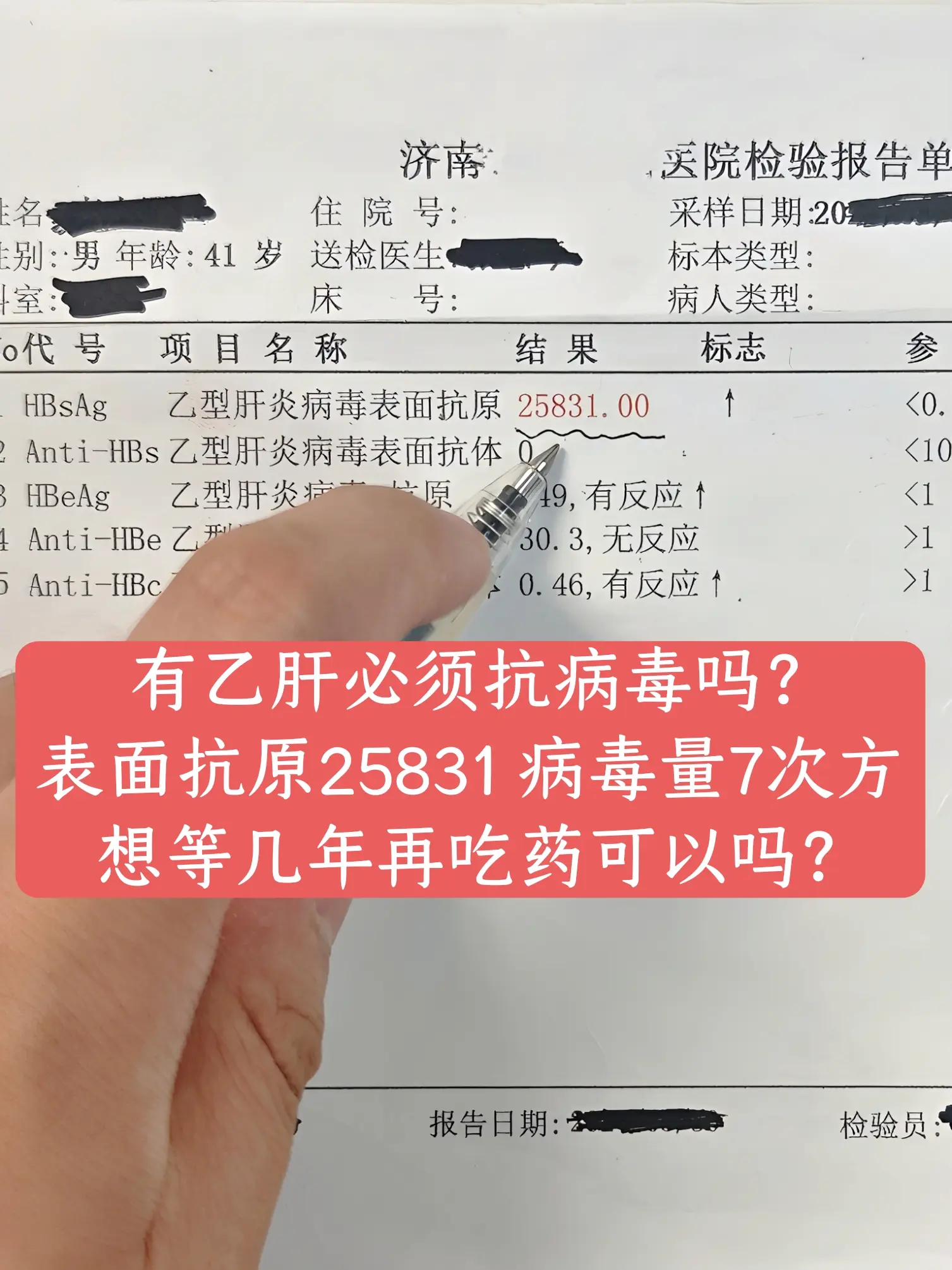 “主任,我查出乙肝,病毒量7次方、表面抗原25831,我不太清楚这算不算高,但也没不舒服的地方,就想等过几年再吃药,主任你觉得我啥时候吃比较合适?”肯定不只他一个人抗拒吃药,想着能拖多久拖多久,等肝功能不好了、脸黄了再吃。