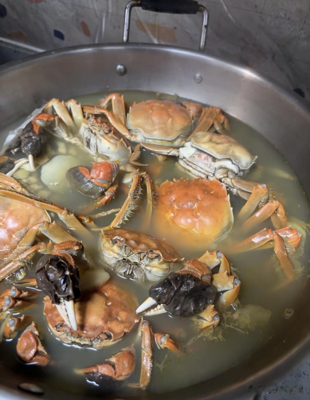 唉,我临时出去办点事,让老公把家里的大闸蟹收拾收拾,结果回家一看他竟然给我来了一锅水煮蟹,难道他就没看到我平时都是蒸的吗?大伙说说这煮的会不会把营养流失掉啊!