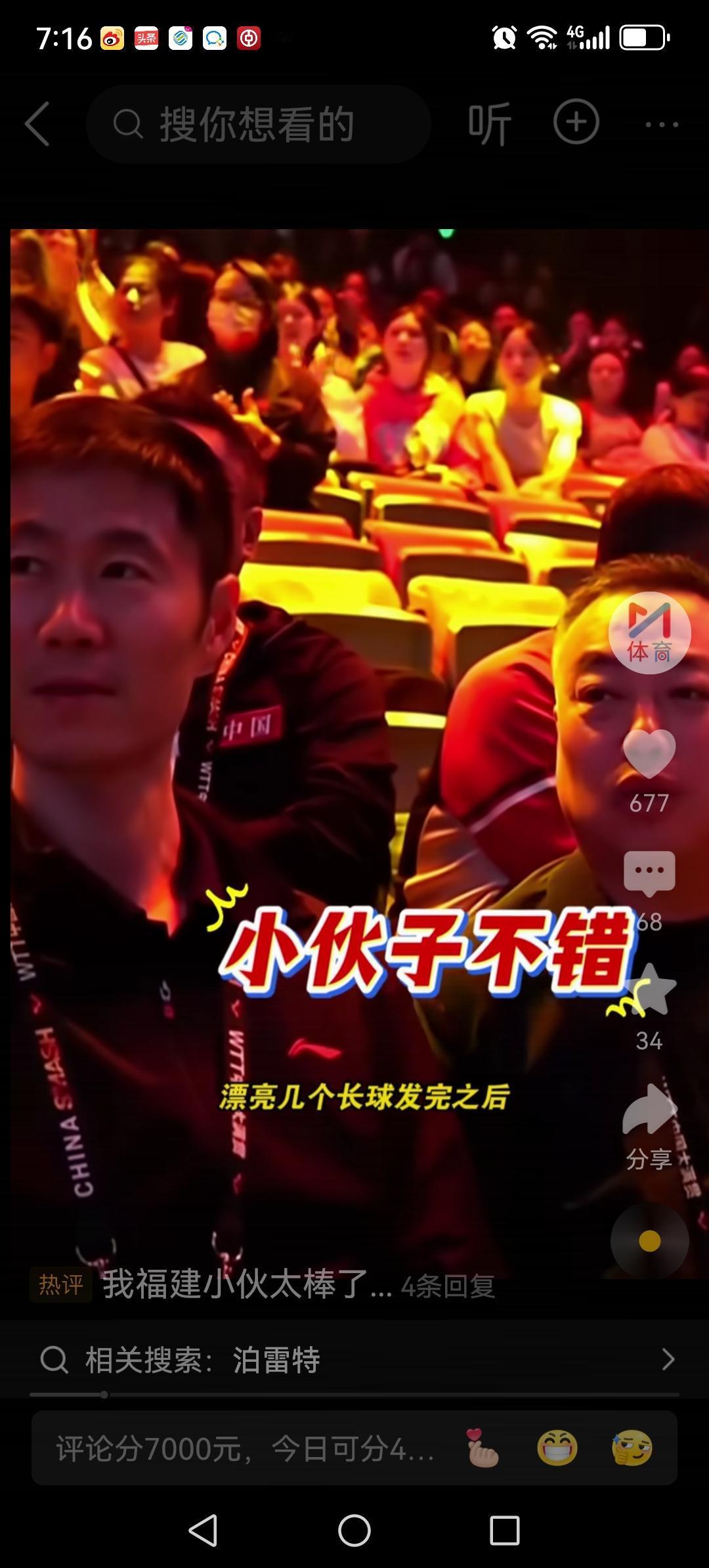 陈俊菘连胜。昨晚战胜张本智和的陈俊菘又以3:2战胜法国选手泊雷特,挺进北京大满贯