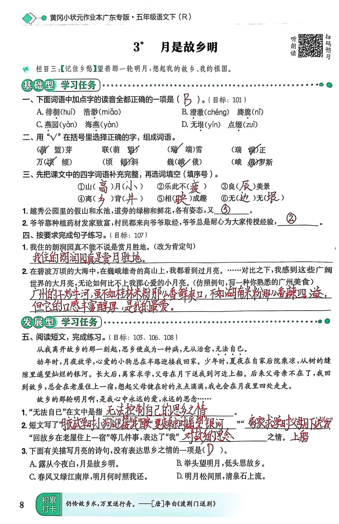1. 露从今夜白,月是故乡明。——[唐]杜甫《月夜忆舍弟》