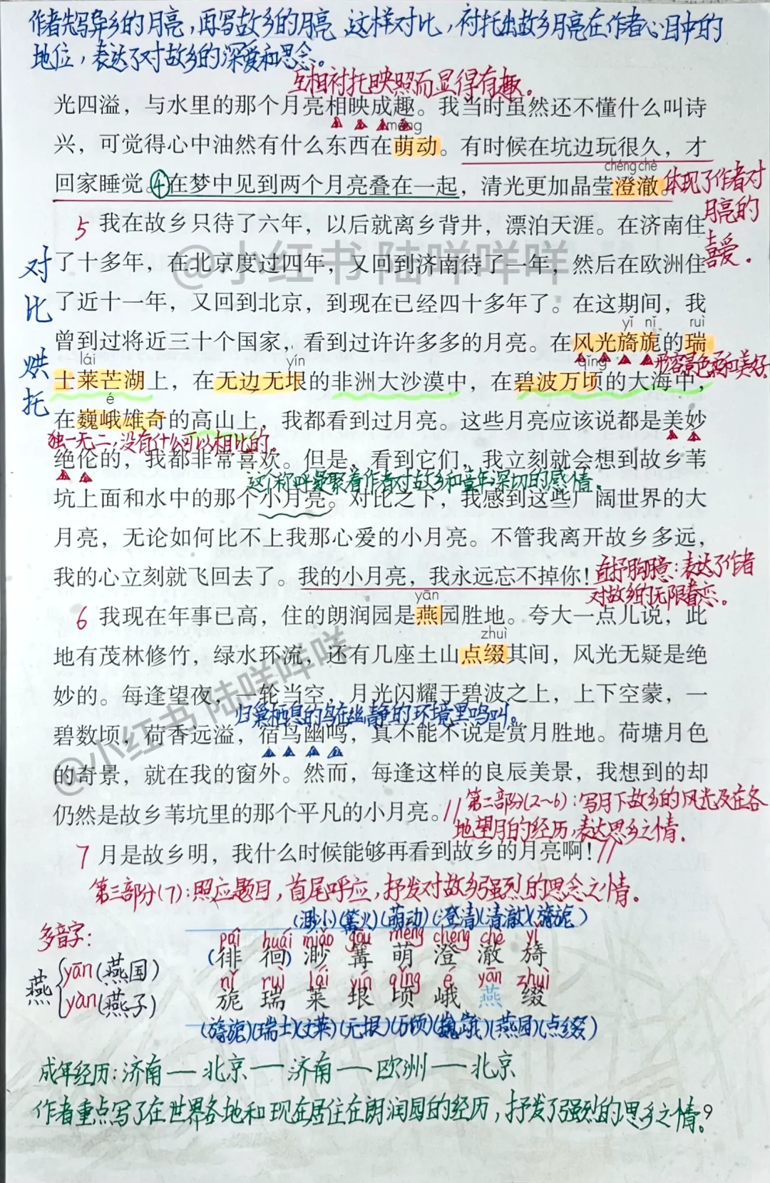 2.默读课文,了解作者由月亮想到的往事和经历,体会作者对故乡的怀念之情。(重难点)
