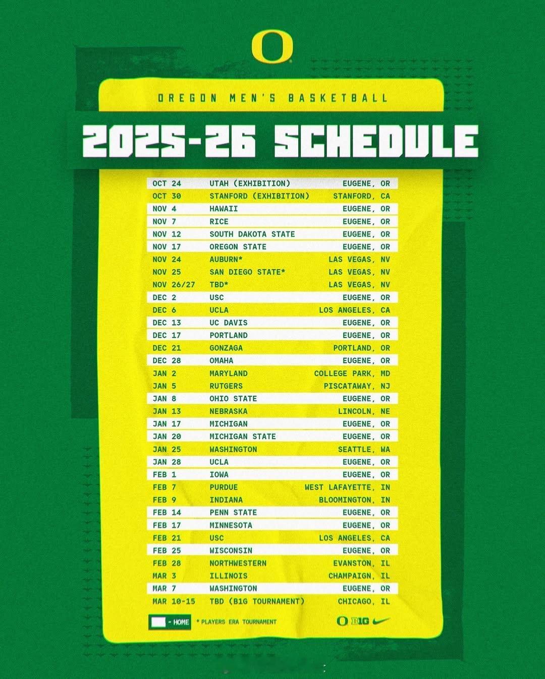 林葳加盟俄勒冈大学 俄勒冈大学此前发布的赛程👇