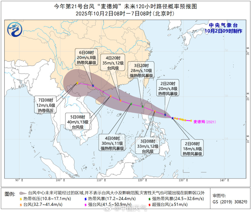 预计,“麦德姆”将向西偏北方向移动,强度逐渐增强, 3日白天将在菲律宾吕宋岛东部沿海登陆,以后穿过菲律宾吕宋岛北部,3日夜间到4日凌晨将移入南海东部海面,以后逐渐向广东西部到海南岛东部一带沿海靠近。(中央气象台)