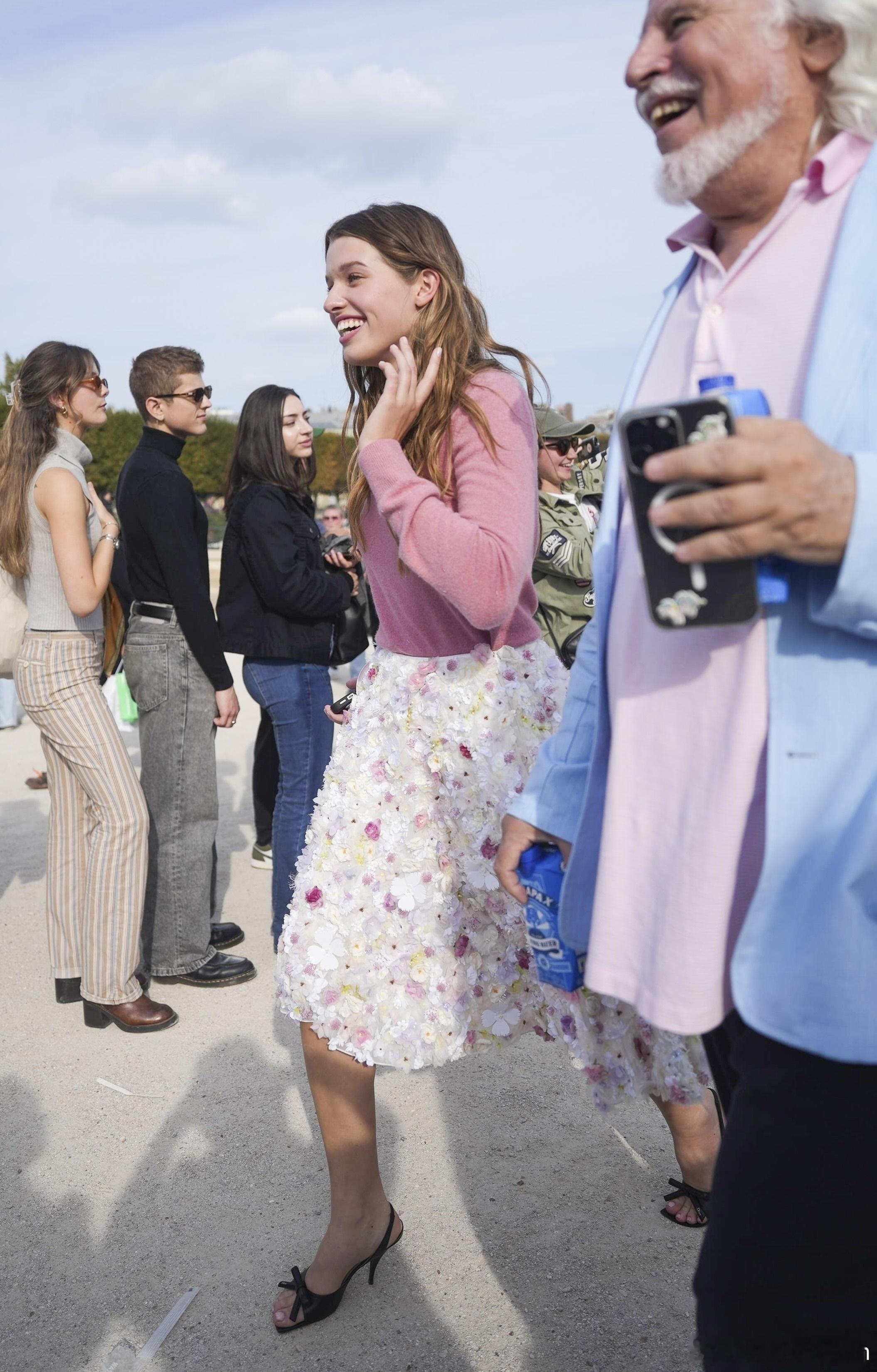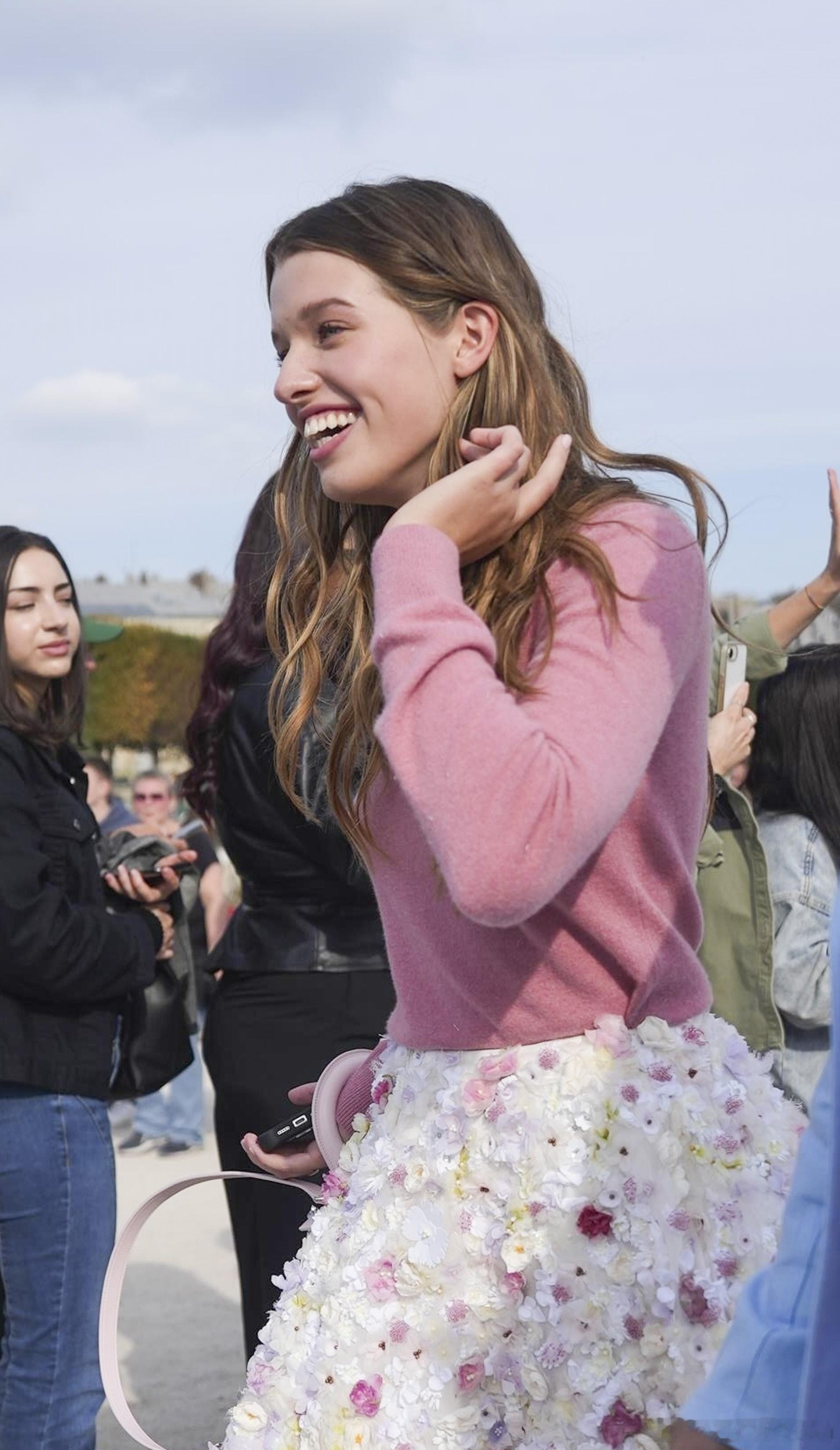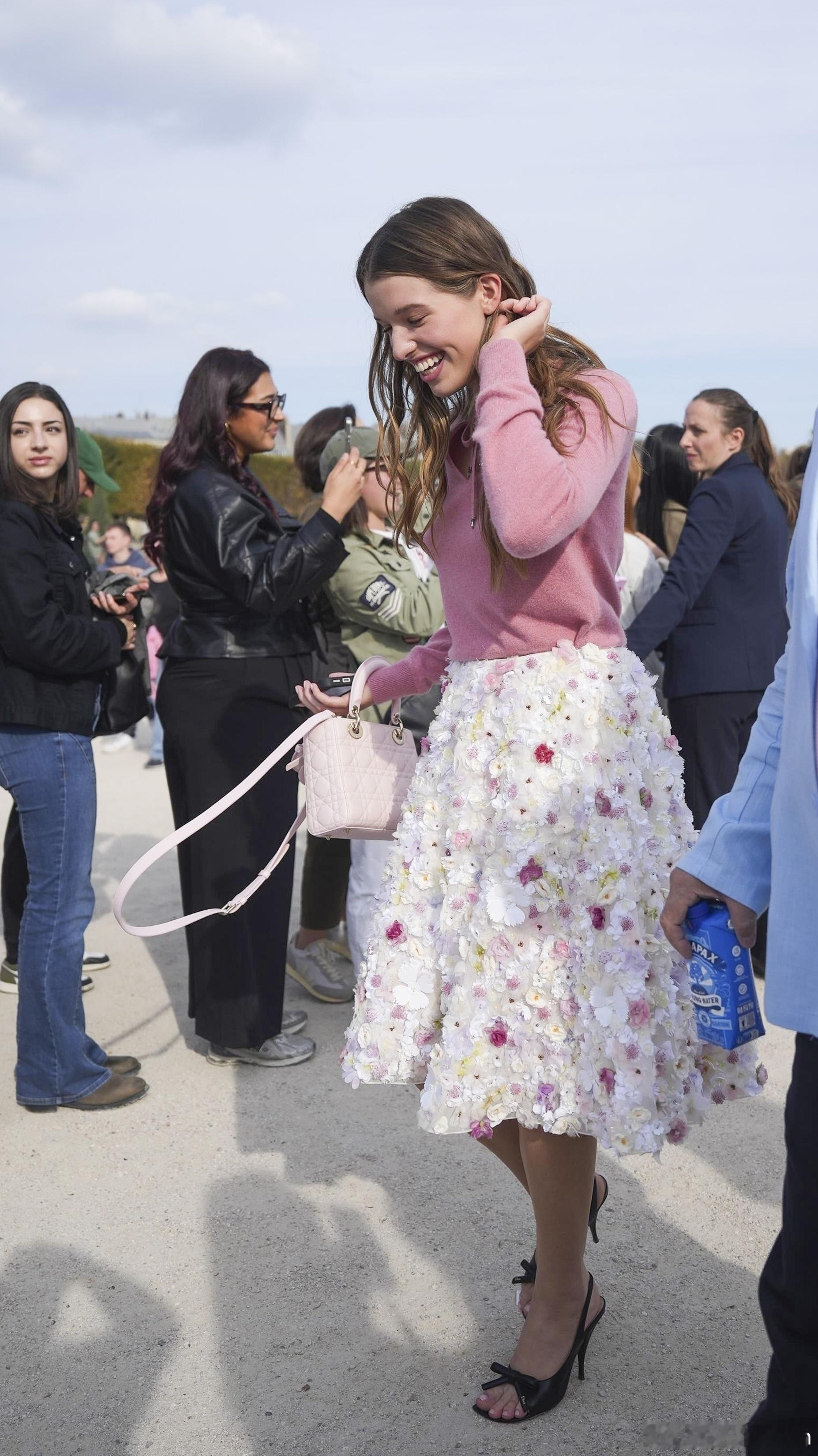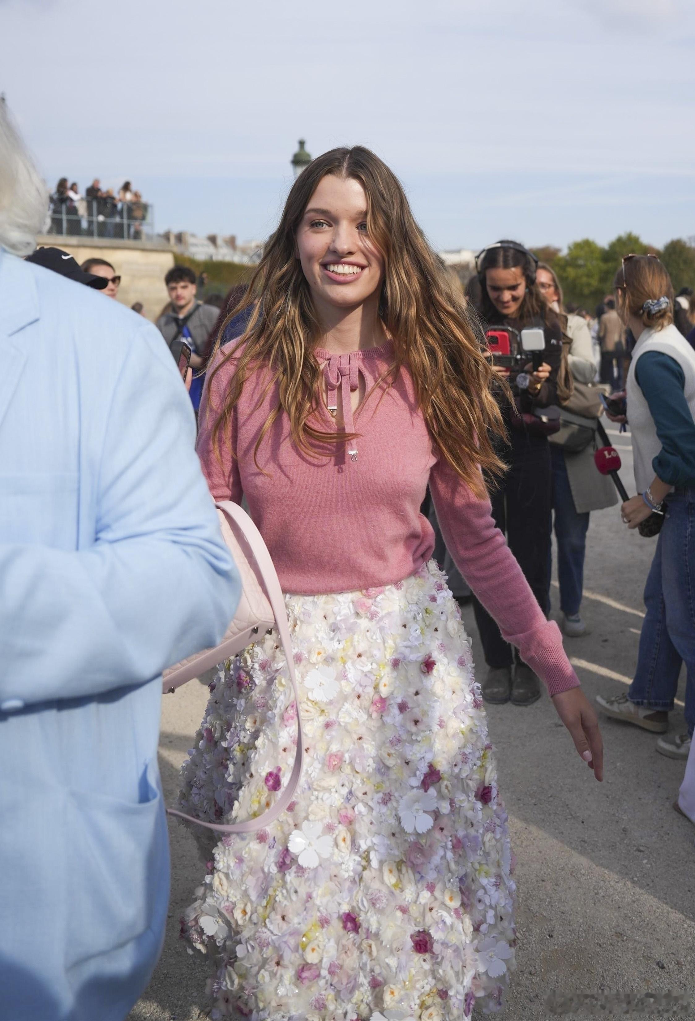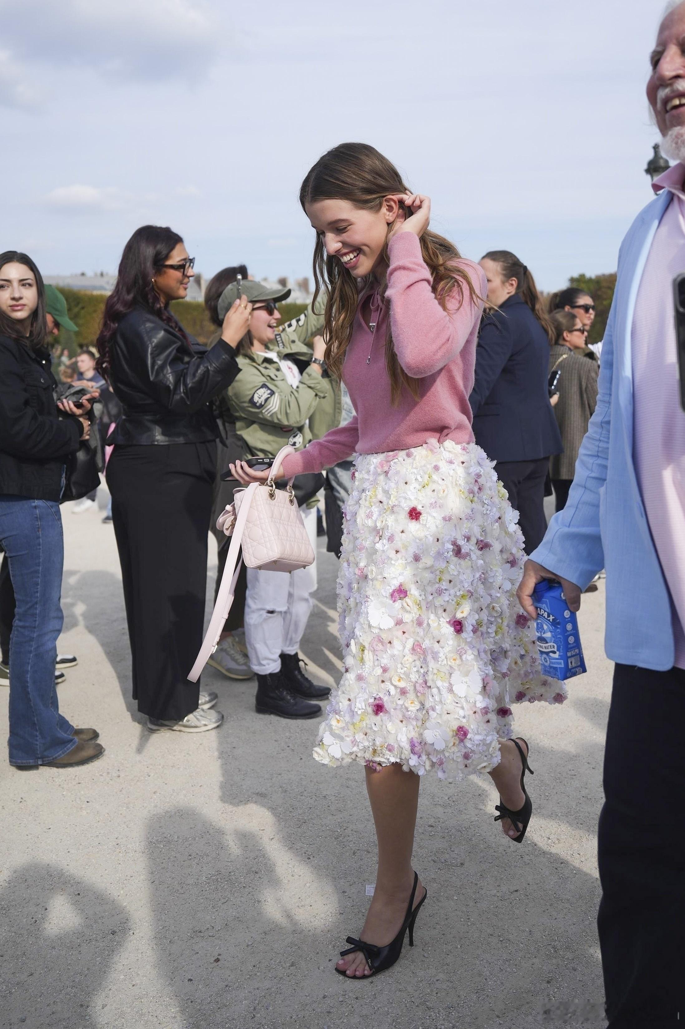 ever anderson艾尔安德森在巴黎时装周期间出席观看Dior的大秀,ever穿着一件浪漫的立体花裙亮相秀场