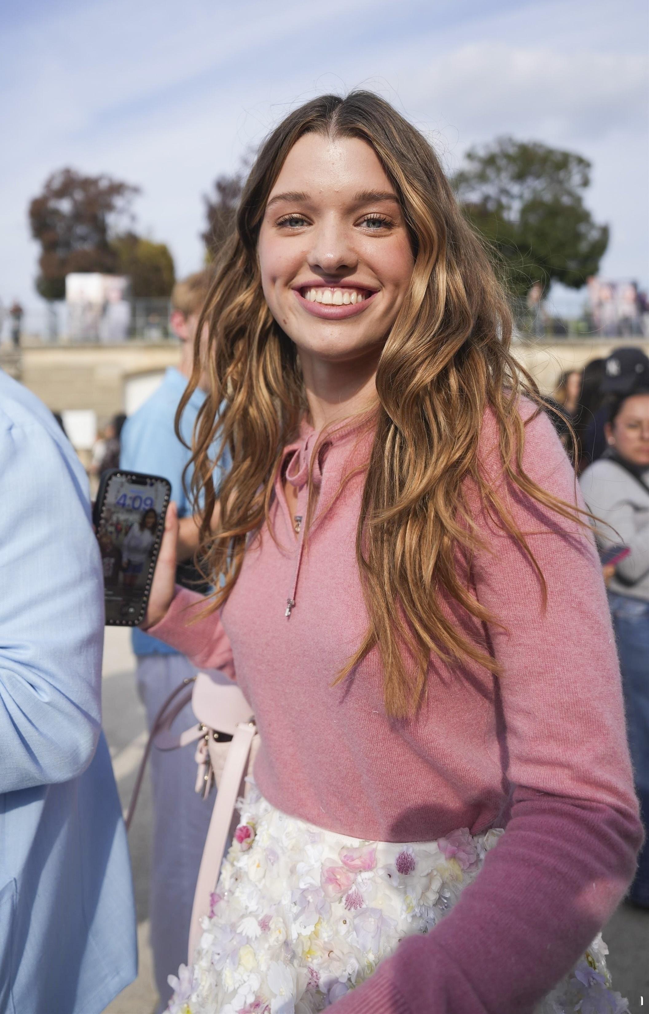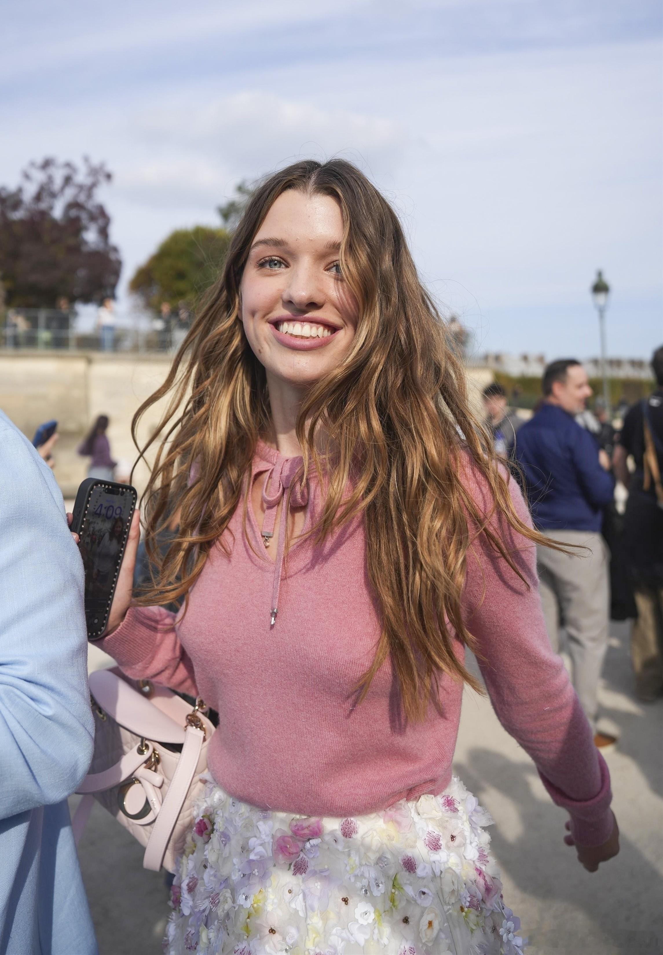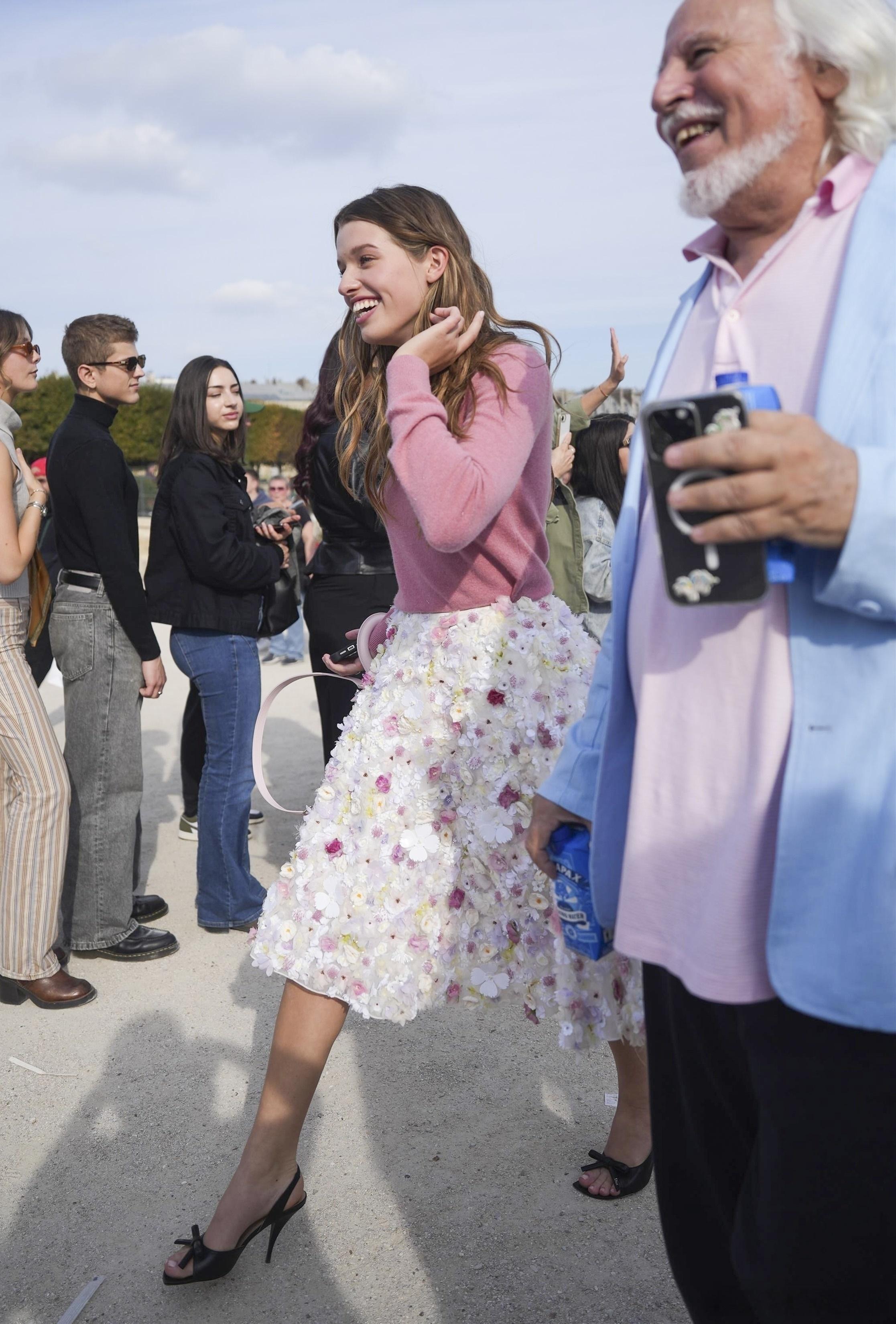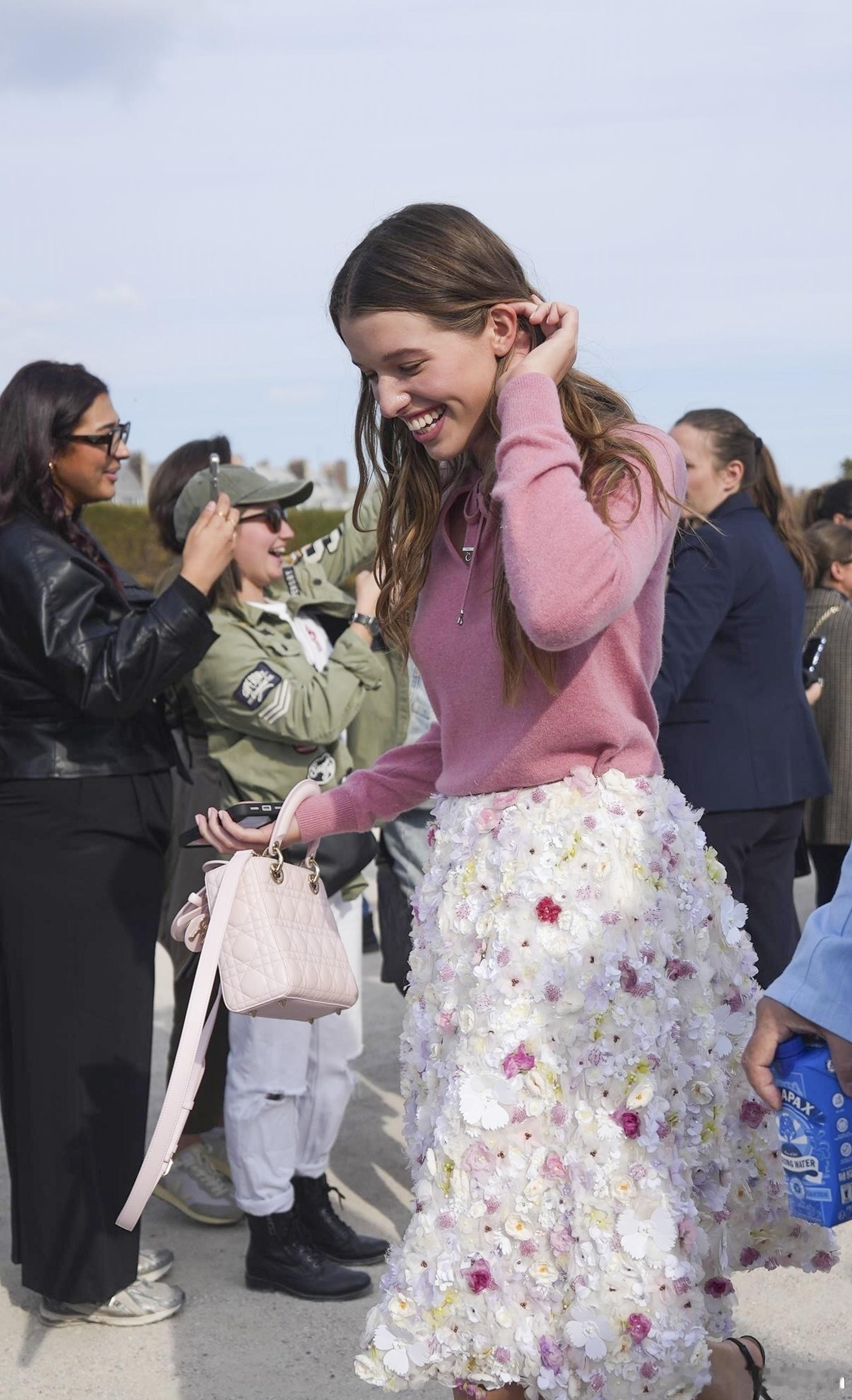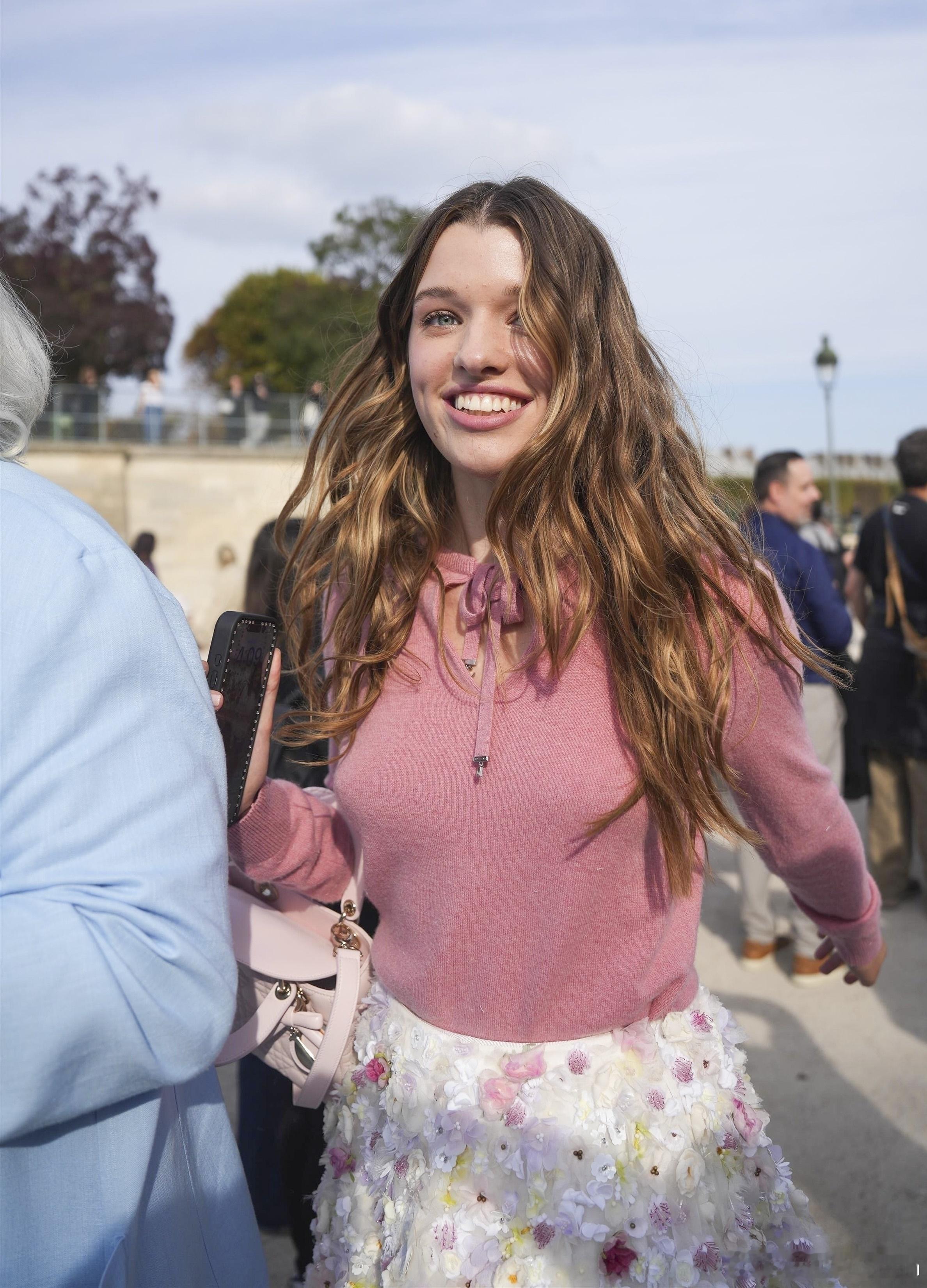 ever anderson艾尔安德森在巴黎时装周期间出席观看Dior的大秀,ever穿着一件浪漫的立体花裙亮相秀场