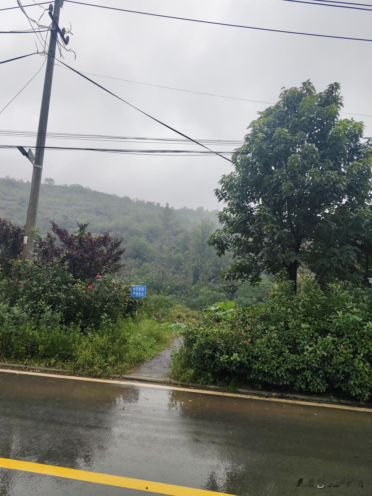《雨中山村路》 雨丝缠绵,将山村的路晕染成一幅朦胧的水墨画。柏油路上的黄线在雨水中泛着湿润的光,一旁的小径蜿蜒向葱郁的深处。电线杆上的线缆如墨线般纵横,与远处被雨雾笼罩的青山交织,勾勒出山野的静谧轮廓。 蓝底白字的“水深危险 严禁游泳”警示牌,在绿意中格外醒目,提醒着人们自然的威严。道旁的树木与花丛在雨中愈发清新,深红的花、翠绿的叶、深紫的枝,在雨的洗礼下层次分明,每一滴雨落,都似在叶瓣与花瓣上敲打出轻柔的韵律。 远山在雨雾里若隐若现,像是大自然挥毫时留下的淡墨痕。空气里满是泥土与草木的芬芳,雨珠从叶尖滑落,坠入积水的小洼,漾开一圈圈涟漪。这雨中的山村路,没有都市的喧嚣,只有雨的低语、风的轻吟,还有自然馈赠的那份宁静与安然,让人心在这湿润的景致里,慢慢沉静,静静沉醉。