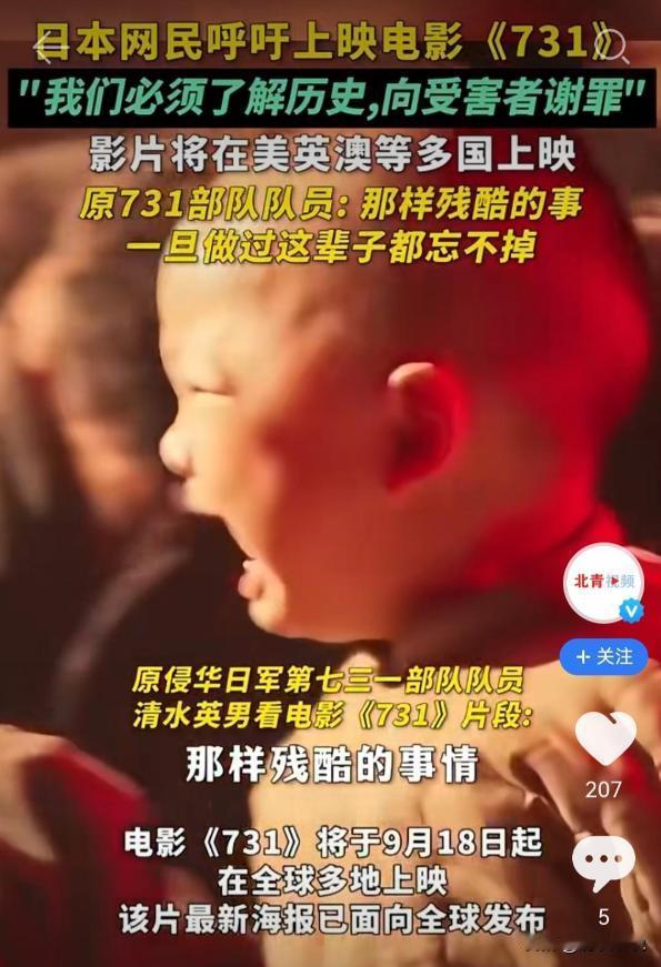日本右翼气炸了!《731》电影在日本遭遇撤档与观众骚扰,真相曝光全球震动,年轻人觉醒引发历史大讨论! 麻烦看官老爷们右上角点击一下“关注”,既方便您进行讨论和分享,又能给您带来不一样的参与感,感谢您的支持! 电影《731》改编自真实历史事件,以中国东北地区的731部队为背景,揭示了该部队在二战期间进行的残忍人体实验。 这些实验的受害者大多是中国、朝鲜及其他东南亚国家的无辜平民,而731部队的指挥官,日军医官石井四郎,利用这些无辜人类进行活体实验,以开发生物武器。 历史文献和战后调查结果显示,这些实验包括对人体进行冷冻、细菌实验、活体解剖等,极其惨无人道。 电影的拍摄,基于大量的历史档案,力求真实再现这些历史事件。 导演赵林山花了十一年时间准备剧本,查阅了几千份资料,力图将731部队的罪行呈现给观众。 片中的每一个细节,都有确凿的历史证据支撑,使得影片更具震撼力。 电影的面世却在日本社会引起了极大的震动,尤其是右翼势力的反应更加激烈。 由于日本国内长期存在的“历史虚无主义”,许多人认为这些事件已经被过去的战争尘封,不应再度提起。甚至有部分右翼分子认为,这部电影是在故意抹黑日本,破坏国家形象。 电影还未正式上映,日本国内就爆发了激烈的抗议活动。一些右翼组织号召民众集会,要求政府干预此片的上映,并指责电影是“歪曲历史”。 不仅如此,部分电影院在电影放映前临时撤档,声称由于“社会影响”,不敢上映这部影片。这一举动无疑引发了更广泛的争议,舆论一时间两极分化,极右翼的声音占据了主导地位。 不仅影院受到压力,前来支持电影的观众也遭遇了极大的困扰。社交媒体上的右翼分子发起了集体“人肉搜索”,通过暴力的方式试图阻止电影的传播。 这些支持者纷纷在网络上遭遇骚扰,个人信息被曝光,甚至有观众因支持电影而被迫关闭了社交账户。 这一切的背后,凸显出日本社会在面对历史问题时的分歧与对抗。 一方面,右翼分子认为这是对国家荣誉的侮辱,另一方面,更多的年轻人则希望通过揭露真相来反思过去,以避免历史重演。 尽管电影在日本国内遭遇强烈反对,但它却在全球范围内引发了广泛的关注。许多外国观众表示,影片揭示了一个他们此前并不完全了解的历史事实,令人震惊的实验细节更是让人无法忽视。 尤其是中国、韩国及其他亚洲国家的观众,对影片表现出了强烈的支持与共鸣。 全球影迷纷纷在社交媒体上表示,“这部电影不仅仅是对731部队罪行的揭露,更是对历史的尊重与对所有受害者的致敬”。 更重要的是,这部电影的上映,促使了更多年轻人对历史真相的关注。 在网络平台上,许多年轻人纷纷表达了他们对历史教育的渴求,希望能够通过电影等媒介了解更多真实的历史事件,避免“历史虚无主义”的蔓延。 与此同时,电影的讨论引发了全球对“历史教育”和“历史真相”重要性的再次反思。 在一些西方国家,电影也得到了积极的评价,认为它是一部具有强烈社会责任感的作品,值得被更多人观看与思考。 《731》不仅仅是一部揭露历史的电影,它的意义远远超出了电影本身。 这部影片为那些无法发声的受害者提供了一个平台,虽然许多人已经离开人世,但电影让他们的遭遇得以被记住,历史的伤痛也因此得到了释放。 这是一份历史的遗嘱,它提醒着人们,不能忘记过去的痛苦与血泪。 同时,影片也为现代社会提出了一个警示:如何面对历史遗留的问题,如何教育年轻一代正确地理解历史,以及如何避免历史的悲剧重演。 这是一个关于人类良知、道德与责任的问题,电影用它的方式为世人提供了思考的空间。