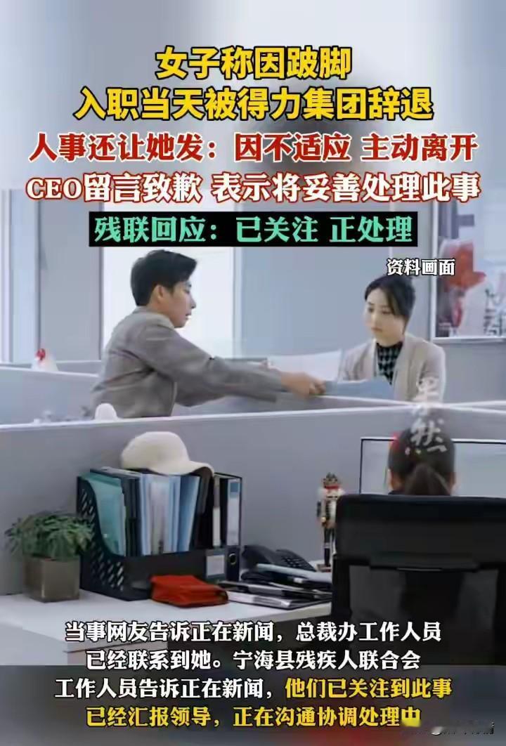 得力集团入职当天劝退裹脚女子后续来了,执行总裁跟帖道歉, 并且派遣办公室主任飞去女子所在地, 想要当面道歉, 并表示该HR不符合企业的核心价值观, 将辞退该人员并严肃追责相关涉事人员,这才是一个知名企业的态度, 这可比西贝公关强多了, 当地残联也表示已关注此事, 正在处理了, 5月份发生的事情, 女子小钱之所以爆出, 是因为她看到前有滴滴公司人事, 区别对待残疾人, 和她的事情一模一样, 最后滴滴公司开除了歧视残疾人的人事,并且赔礼道歉了, 这和她的遭遇一模一样, 她不想残疾人遭到不公正待遇, 随意勇敢的占了出来, 这个得力人事一看就是老手, 还强迫人家微信发自己不适应, 把离职的责任推给女生, 真是太可恶了, 大家觉得得力集团这次危机公关做的怎么样? 你会主动帮助残疾人吗 一起聊聊职场 分享些职场心得 得力总部 得力公司