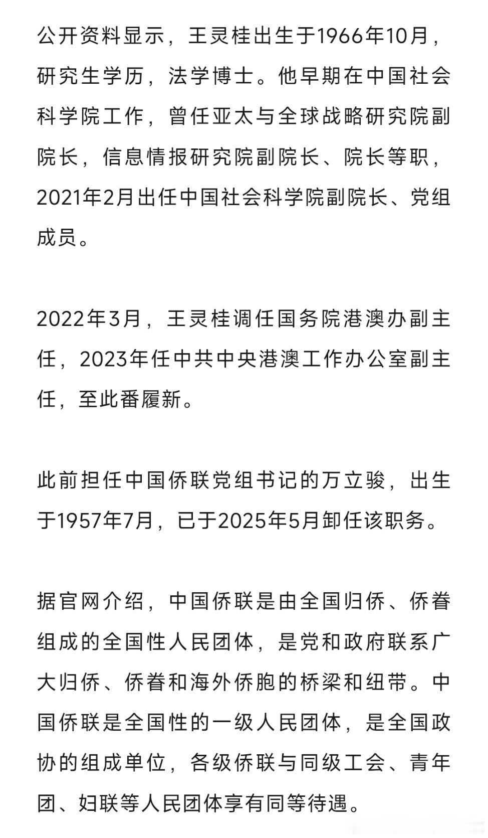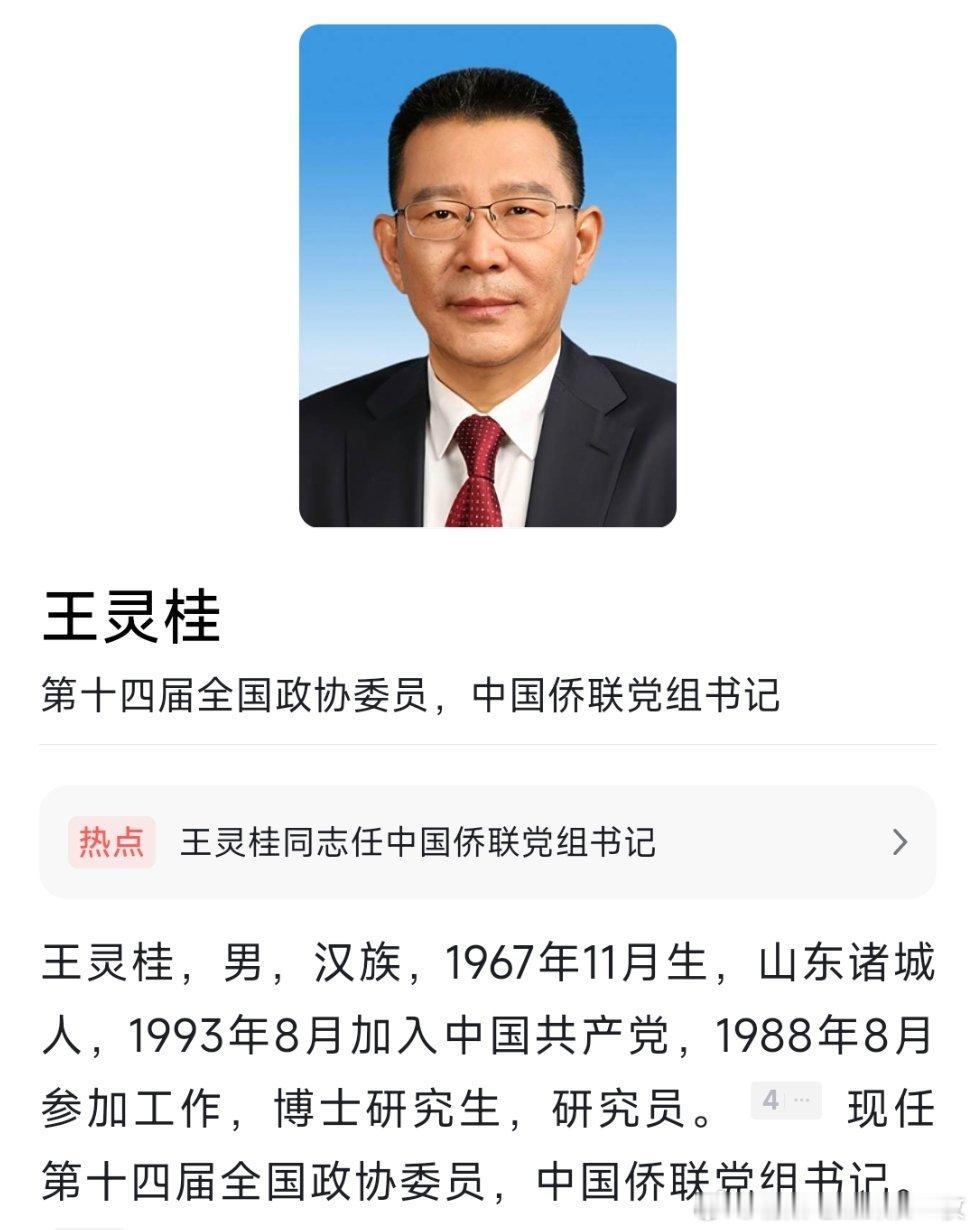王灵桂任中国侨联党组书记。热点现场 ​​​
