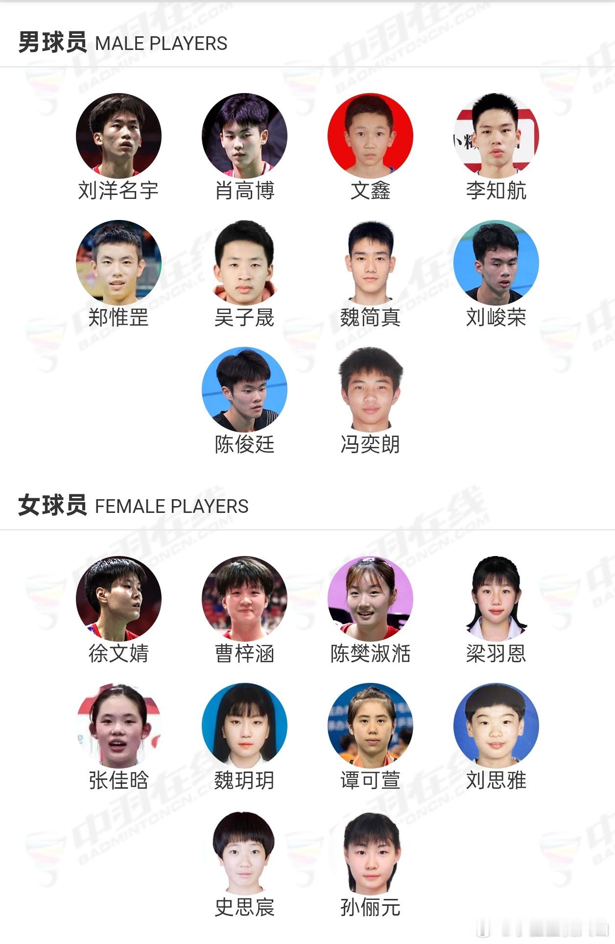 男:刘洋名宇、肖高博、文鑫、李知航、郑惟罡、吴子晟、魏简真、刘峻荣、陈俊廷、冯奕朗