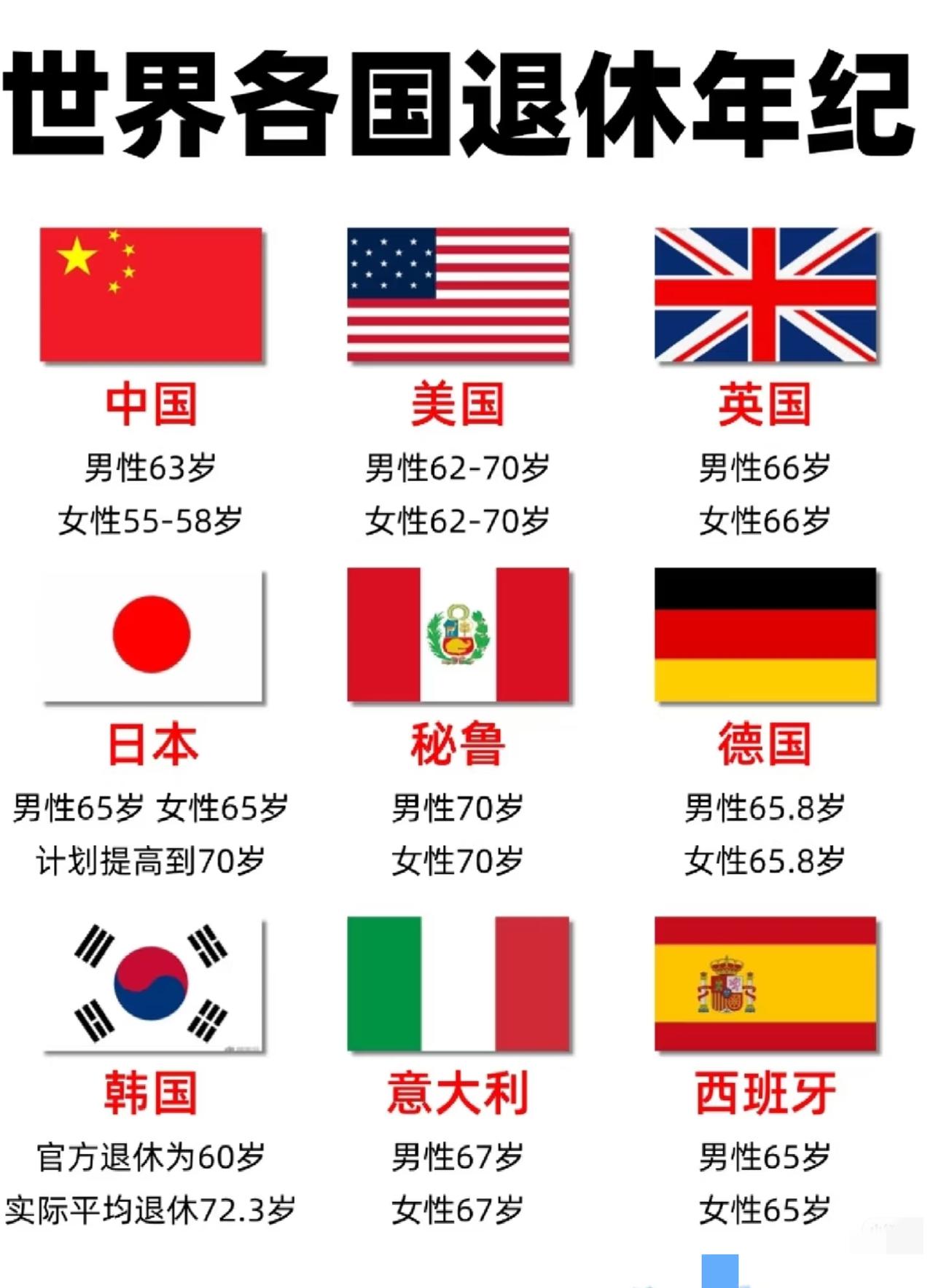 其实各国除了公务员是我们理解的“退休年龄"概念外,其他人群都是叫做全额领取退休金年龄,领取退休金并不意味着“退休”不参与劳动了[笑哭]国内目前也是向这个方向转变,退休年龄正在转变为全额领取养老金年龄,这两个概念有很大不同。