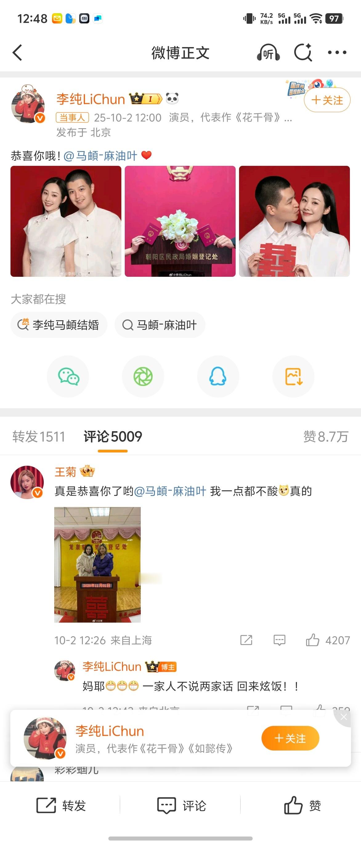 演员李纯结婚了,李纯最出名的就是两件事,一是演过《花千骨》里的霓漫天,二是身上有 【23评论】【56点赞】 唐宪宗 霓漫天 花千骨 南山南 内地明星 奇幻片 爱情片 古装片 明星婚恋 科技小疯汇 2025-10-02