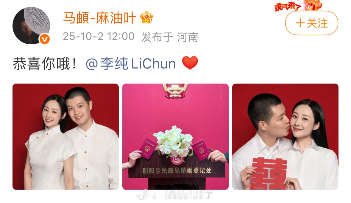 李纯和马頔官宣结婚了,俩人恋爱就挺低调挺稳的。