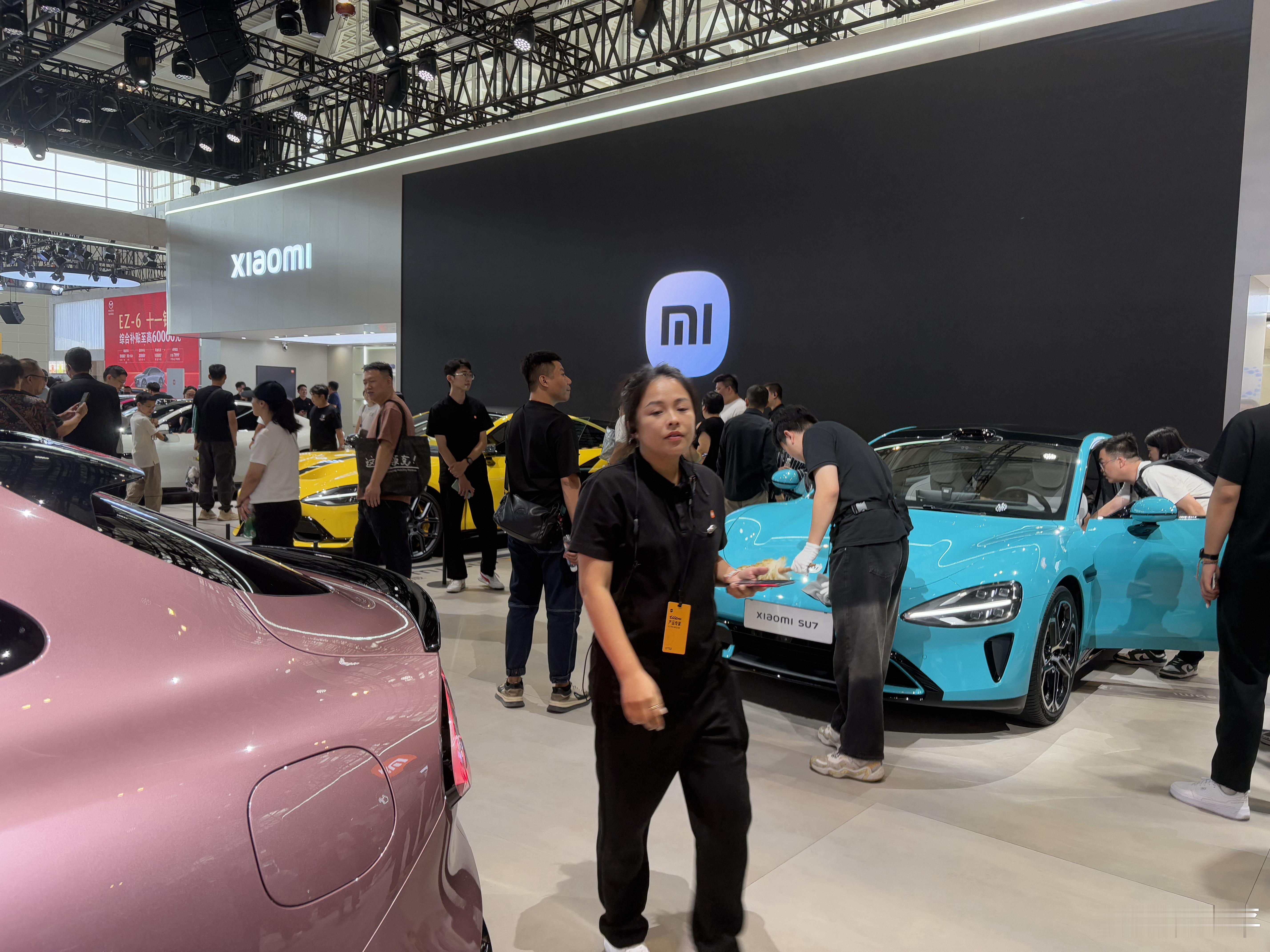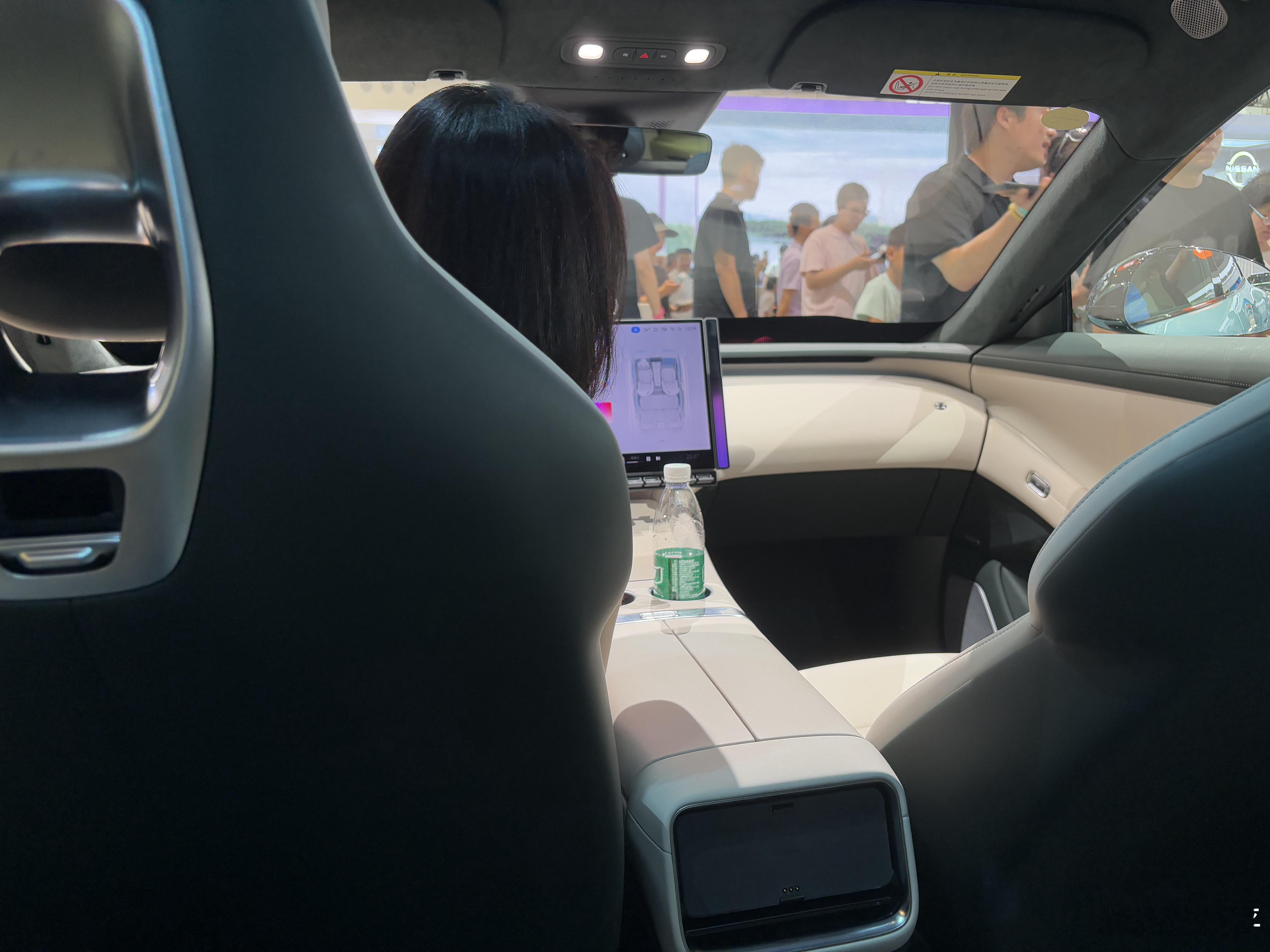 客流量也是最大的,应该是车展内,唯一一个不领礼品也要排队的展台,而且进来后每台展车都坐着人。