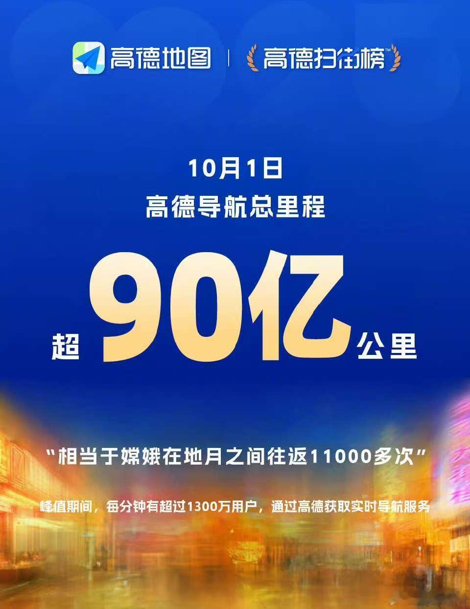 国庆第一天,3.6亿人都在用高德地图开启出行,总里程超90亿公里,能在地球和月球之间往返11000多次!