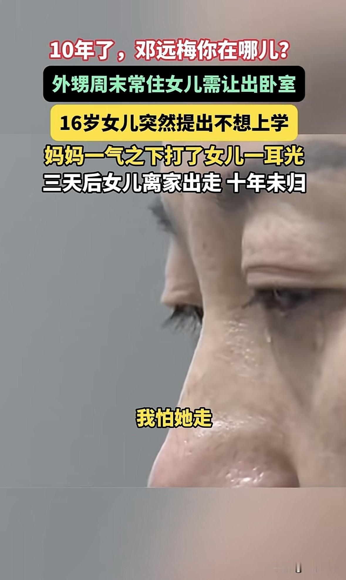 重庆,女子离婚后带着闺女住在一间小房子里,她让上学的外甥到了周末就来她家住,每次外甥一来,女子都让闺女把房间让出来,搞得闺女只能睡客厅,久而久之,闺女觉得妈妈太偏心,就闹情绪,还提出不想再上学,女子追问原因未果,抬手就给了闺女一巴掌,没想到,闺女因此离家出走,一走就是10年,至今未归,女子每天都在懊悔中度过。 王姐今年46了,早些年她男人好赌又爱打人,实在过不下去离了婚,从此她一个人拉扯着女儿小梅过日子,母女俩守着个小屋子相依为命。 那时候小梅才几岁大,王姐一个人干活赚钱养家,日子过得紧巴巴的。 2015年的时候,王姐的外甥也到重庆念书,王姐寻思都是一家人,应该多照应照应,就让外甥一到周末就来自己家住。 每次那孩子来了,王姐就让小梅把自己的房间腾出来,让给那孩子住,小梅则睡客厅沙发。 小梅倒也懂事大方,说任何亲戚来了,她都会把房间让出来。 可后来对方来的多了,小梅心里慢慢有了怨气,她一个女孩家,不喜欢别人总是一而再再而三地霸占她的屋子。 所以后面外甥来了,小梅总是摆脸给他看,对此王姐没少指责过小梅,说她一点不懂事。 到了16岁那年,小梅突然说不想上学了,王姐一听肯定急了呀,你一个娃娃,在该上学的年纪不上学,你准备去干啥? 王姐追着问原因,可闺女就是不肯说,她实在急红了眼,抬手就给了小梅一巴掌。 巴掌声脆生生地响在屋里,小梅捂着脸瞪了她半天,扭头就回了自己屋,关上房门就开始号啕大哭。 3天后,小梅离家出走了,一开始王姐没当回事,她只当孩子是在赌气,等消了气,自然就回来了。 可她没想到,孩子一走就是10年,至今未归。 孩子走的头几天,她还当是去同学家住了,为了不让孩子跑远,她把孩子的身份证偷藏了起来。 谁知,好些天过去了,孩子还是没回来,她赶紧报了警,然而就是因为孩子没随身带着身份证,所以她报了警也迟迟找不到线索。 警察说没身份证信息,查起来跟大海捞针似的。 当初想着孩子小,怕她乱跑,她才藏了身份证,没成想现在倒成了拦路虎。 王姐不死心,把攒了半辈子的积蓄全取出来,再边打工边找孩子。 深圳、遵义、贵阳,只要听说有孩子的线索,她立马买了车票就冲过去,可每次都是失望而归。 王姐夜里常梦见孩子穿着单衣在寒风里走,醒来枕头都是湿的。 这些年王姐老得很快,她总说要是时光能倒流,宁愿自己少活十年,也不碰孩子一指头。现在她就盼着能再见小梅一面,哪怕就一眼,能亲口说声“对不起”也值了。 有人说,拿外甥当亲儿子的,也是少见,外甥,侄子都靠边站,我闺女最重要! 一个当妈的不能处理好女儿的情绪,在外甥和女儿之间选择外甥,那10年后还找女儿干嘛? 她到现在还不明白女儿为什么会离家出走,她一直以为就是那个耳光,其实是她对女儿的态度问题,早已成为了女儿心中的一根刺。 侄子过来借住就是亲戚,而且自己的女儿是个女孩子,竟然要让出卧室坐在大厅。 外甥也是人才,明明看到房间不够住,每次住表妹的房间,人家家里发生矛盾,到周末还经常去。 十有八九是人已经没了,没有身份证,没有钱,怎么活下去? 那么,从法律角度,怎么看待这件事? 《未成年人保护法》第17条规定:未成年人的父母或者其他监护人不得实施虐待、遗弃、非法送养未成年人或者对未成年人实施家庭暴力。 王女士因女儿小梅未让出卧室而扇其一巴掌的行为,其实已经构成对未成年人的家庭暴力。 监护人不得以任何形式实施家庭暴力,包括殴打、谩骂等侵害未成年人身心健康的行为。 王女士的一系列行为,可能是导致小梅离家出走十年未归的导火索,已经严重侵害了女儿的人身安全与心理健康,违反了法定监护职责。 《民法典》第34条规定:监护人的职责是代理被监护人实施民事法律行为,保护被监护人的人身权利、财产权利以及其他合法权益等。监护人依法履行监护职责产生的权利,受法律保护。监护人不履行监护职责或者侵害被监护人合法权益的,应当承担法律责任。 王女士作为小梅的监护人,负有保护其人身权利的法定职责。然而,她通过暴力方式处理家庭矛盾的行为,不仅没有履行“最有利于被监护人”的监护原则,反而直接侵害了小梅的身体权、健康权和情感需求。 监护人侵害被监护人合法权益的,需承担法律责任。 本案中,王女士的暴力行为与小梅的长期离家存在因果关系,她需要对监护失职承担民事责任。 对于这件事,你怎么看? 信源:浙江警视 2025-10-1 欢迎关注@一案一论