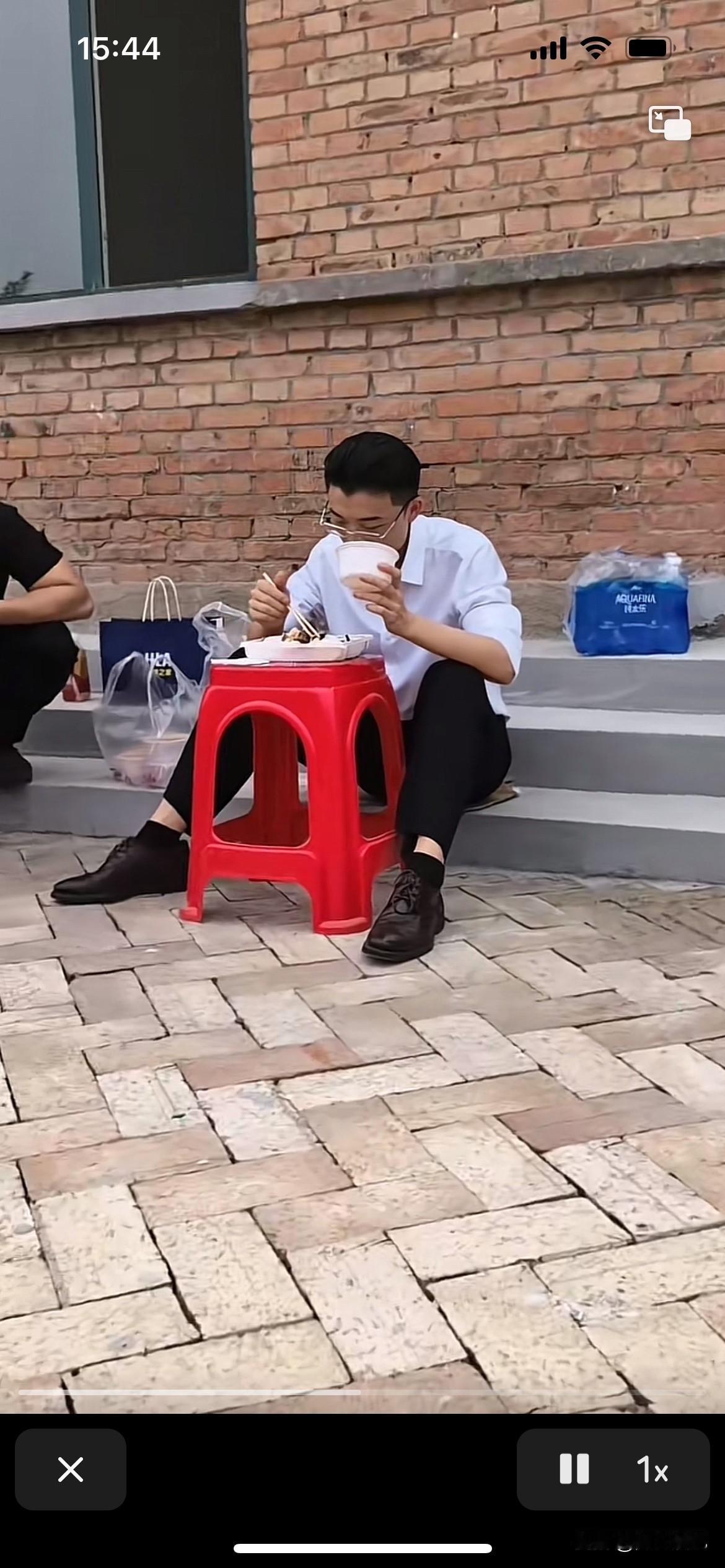 郭有才老师也有落魄潦倒的时候,看看这个坐在地上就吃饭的样子,就是可怜,不要看他在舞台上风风光光,人模人样的,私底下还是穷的。 不忘本,不忘来时路,时刻不把自己当啥明星大腕,有才能屈能伸,台上演戏,台下做人,这才是真正的有才。