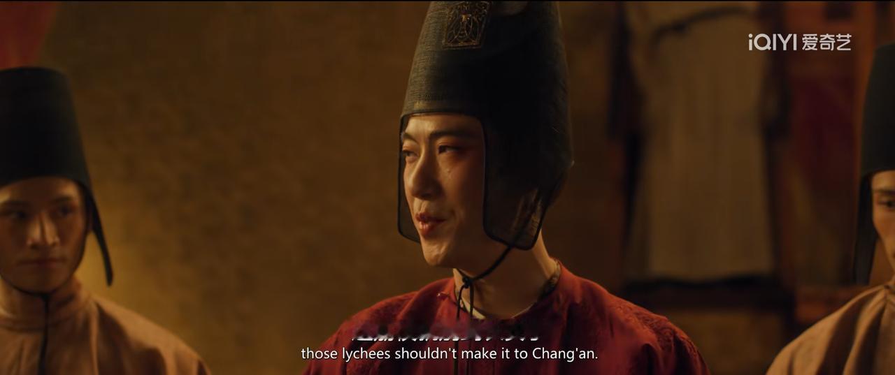 电影《长安的荔枝》,贵妃华诞,权宦鱼朝恩让画师日夜赶工,在墙上画的巨大的红鲤鱼, 右相一句冷冰冰的评价:这鱼大的,有点碍眼。 就为李善德和林邑人等运送荔枝的队伍,带去了杀身之祸。 鱼朝恩姓“鱼”,杨国忠所说的“鱼”,不是墙上画的红鲤鱼,而是以画喻人,讥讽姓鱼的野心太大。 杨国忠嫉恨鱼朝恩,装都不装了,直接当众打脸。 后者当然要反击,不能坐以待毙。 所以鱼朝恩暗中派人去截杀李善德等人,破坏右相想要靠运送鲜荔枝的功劳,圣眷日浓的目的。 为了保证鲜荔枝运送成功,杨国忠抓了李善德的妻子和女儿做人质。 如果李善德不能把鲜荔枝准时运回来,那一家人的命运可想而知。 所以李善德拼死也要把荔枝运送到长安。 这说明什么? 说明右相猜到了会有人阻拦荔枝运送的事,所以用李善德亲人的性命胁迫他,务必事成。 杨国忠说,“流程那种东西,是强者不必遵循的规矩。” 他自认为自己是强者,可是这样的强者,干的事却是欺压和盘剥手无寸铁的老百姓和底层小吏。 面对安禄山的造反,他的手段又强在哪里? 电影结尾,李善德因为当面揭露杨国忠虚伪贪婪,借转运荔枝一事,侵吞民脂民膏2万多贯钱,被杨国忠所不容,要用佛杖将他打死。 幸好鱼朝恩带着玄宗赏赐的一篮子绿李来了。 之前要杀李善德的是鱼朝恩,现在保他命的也是这个人。 杨国忠一人独占了运送鲜荔枝的功劳,不可能让唐玄宗知道李善德这个真正劳苦功高的人。 只可能是鱼朝恩跟皇帝说的,因为李善德是他“慧眼识人”发现的。 既为自己揽功,也不让杨国忠一人独占圣宠。 结果就是,杨国忠和鱼朝恩皆有功,而李善德保住了命。