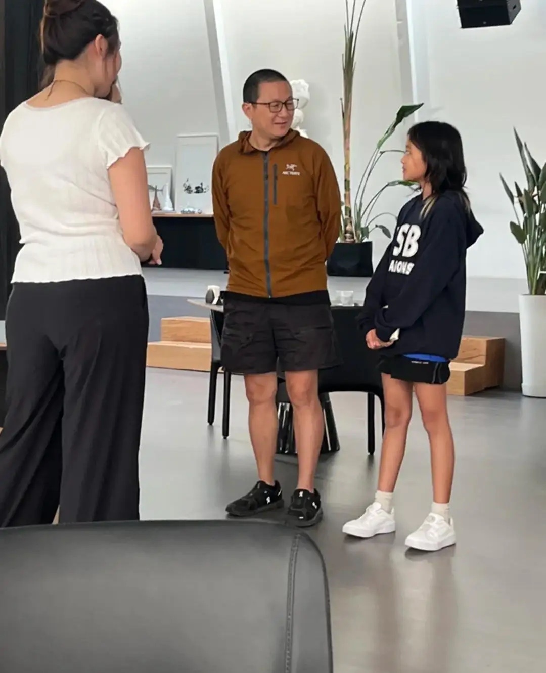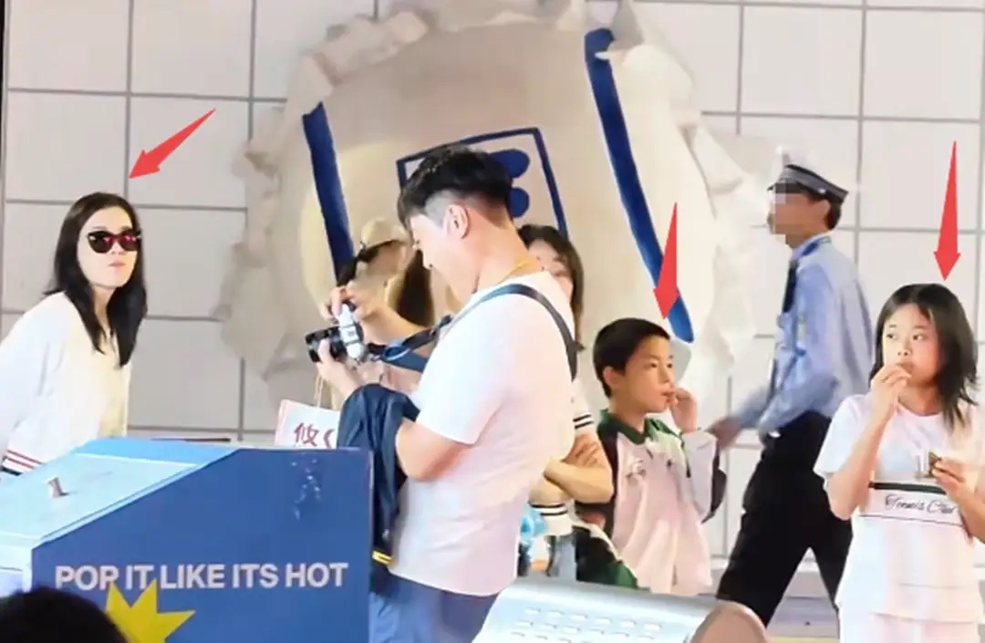 梅婷一家四口逛街,曾剑挽起袖子露出花臂,边走边嚼东西看着好凶!​​​