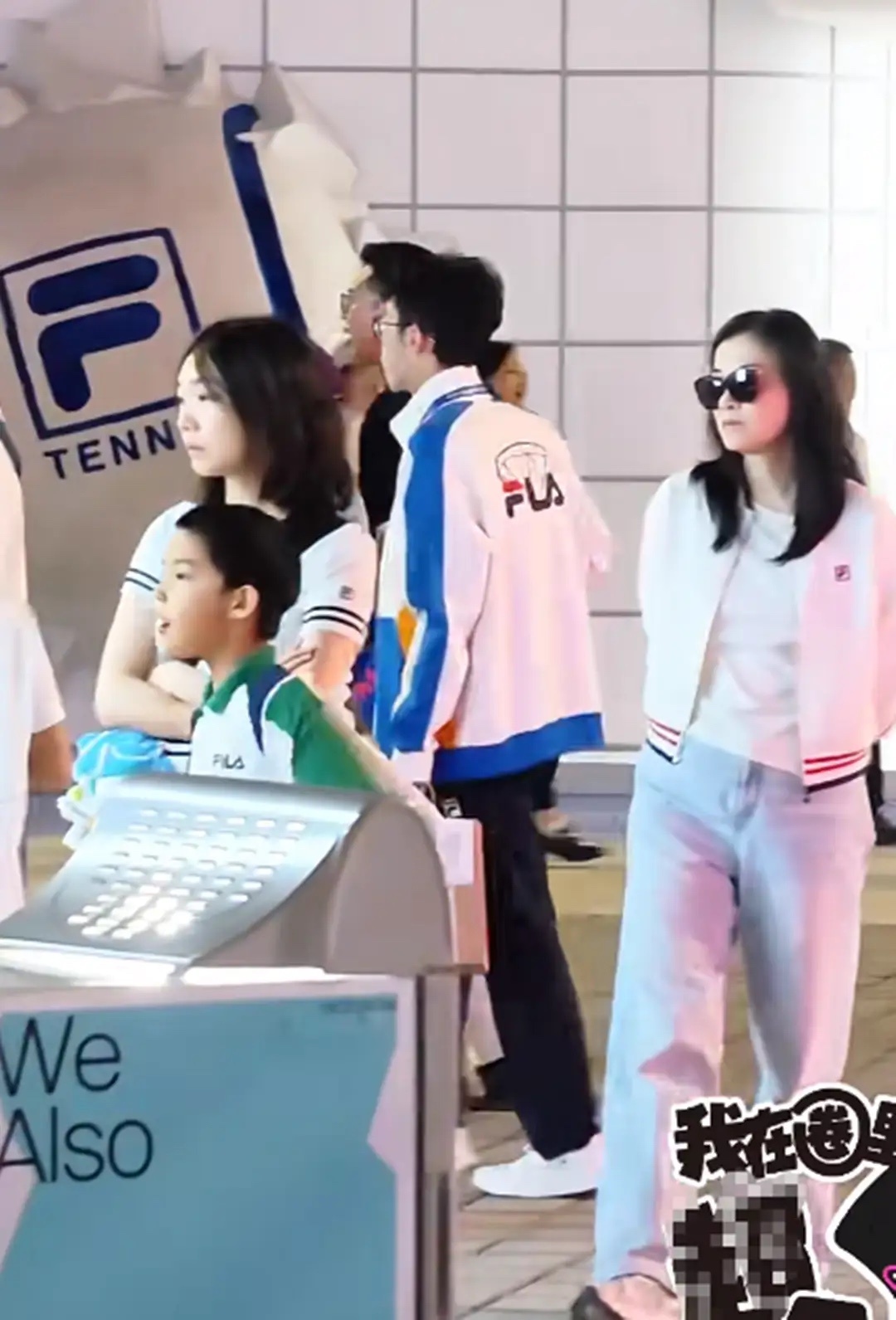梅婷一家四口逛街,曾剑挽起袖子露出花臂,边走边嚼东西看着好凶! ​​​