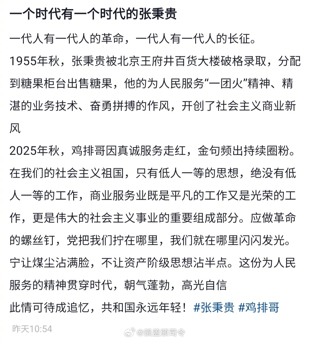 #鸡排哥太累没说话被指没有情绪价值#挺佩服鸡排哥的,平凡岗位做出了不平凡的事,不仅积极乐观向上而且还有大局观,把正能量传播和城市文旅发展与口碑建设也放在心上!
