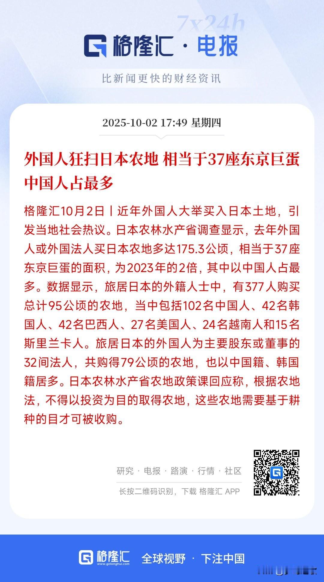 中国人去日本买地,还不能开发,真是怪事 据日本报道,外国人去日本大量的买土地,尤