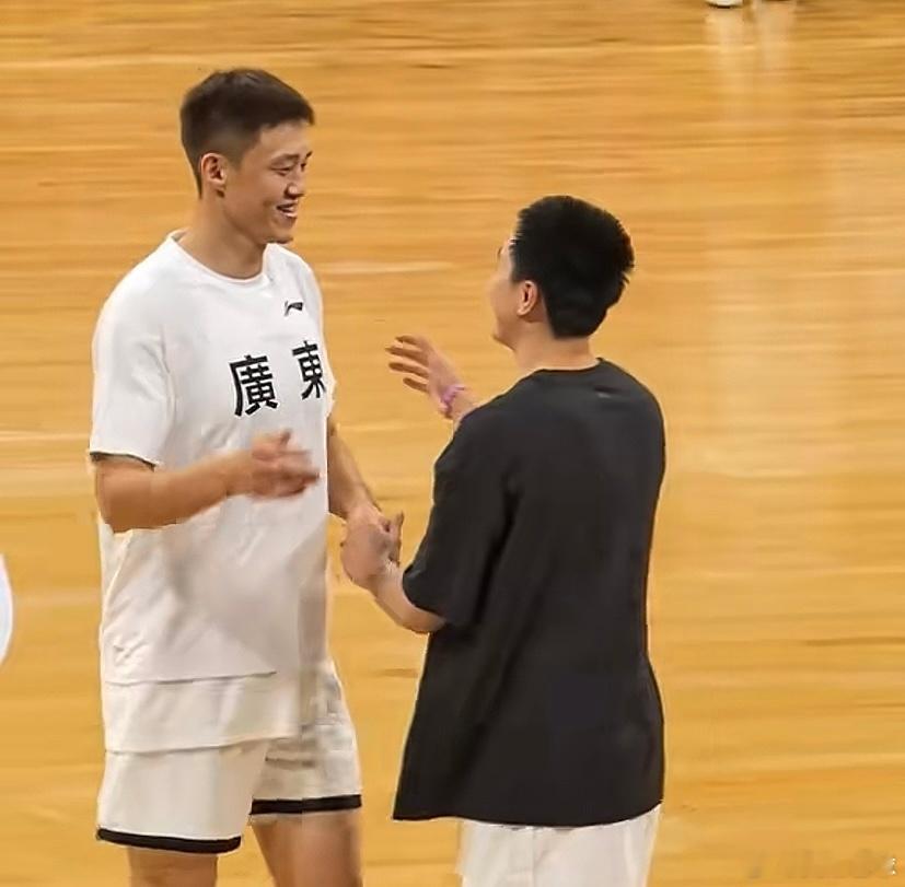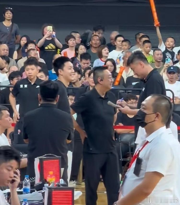 心情不错!赛前小胡和教练队友们寒暄了几句,现场氛围很热闹啊,基本全场坐满了