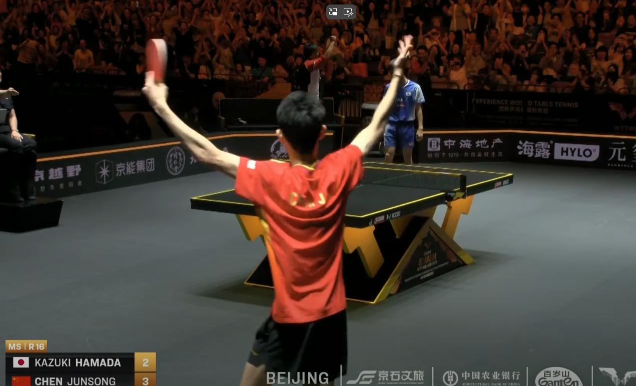 陈俊松太嚣张了!我好喜欢,哈哈 小陈连续三场3:2取胜了, 太牛了。 今天的