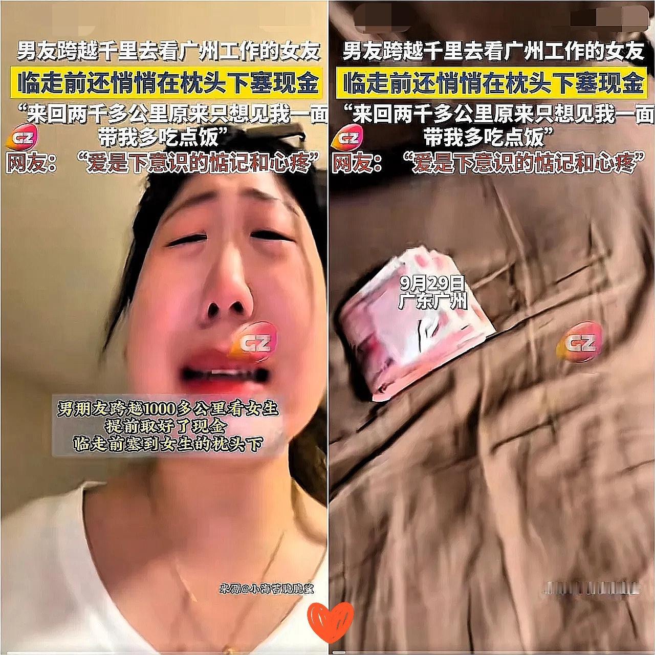 破防了!广州,女生和男友温存后,依依不舍送男友去车站,回家后竟然发现枕头下面有一叠现金,原来是男友转账她不要,这次男友跨越1000多公里见面,特意取了现金偷偷塞给她,就为让她'吃好点’!” 男生跨越1000多公里来见她,知道她在广州打工舍不得花钱,房租贵还吃得差,把自己都养瘦了。这次来,他不仅想带她吃好的,还偷偷塞钱,怕她拒绝。而女生也超体贴,知道男生工作辛苦,从不收钱,也不暴露自己过得拮据。 爱不就是这样吗?不是嘴上说“我爱你”,而是默默为对方考虑,双向奔赴才最甜!那些舍不得路费、时间,还觉得异地恋孤寂变心的,真的该学学这对! 你觉得异地恋最重要的是什么?
