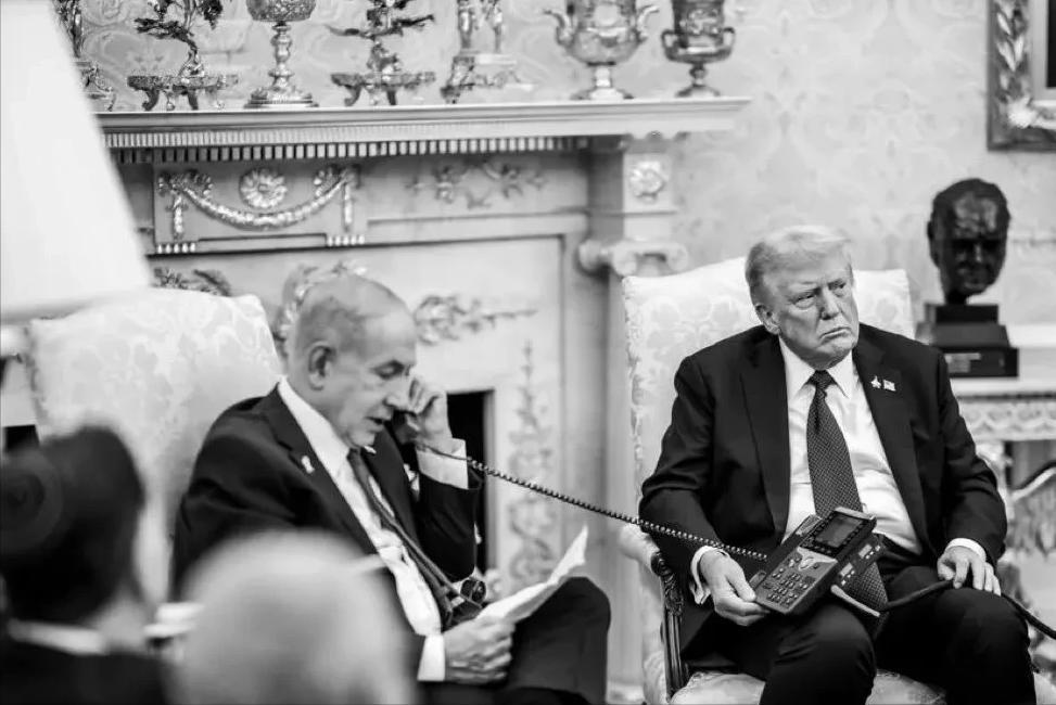 特朗普在白宫接见以色列总理内塔尼亚胡,万万没想到,特朗普竟现场逼着以色列总理向卡塔尔打电话道歉。 特朗普果真是啥事都敢干!当着一众手下的面,直接将电话放自己大腿上,让一旁的内塔尼亚胡,依照提示稿上的指示,向卡塔尔公开道歉...只是,明眼人一看就知,内塔尼亚胡虽说看似一脸无奈,但这翘着二郎腿的嚣张姿态,可真不像是被逼迫的?难怪有人说,这两人又在演双簧呢!如果美国真心想管,难道会真管不了以色列?