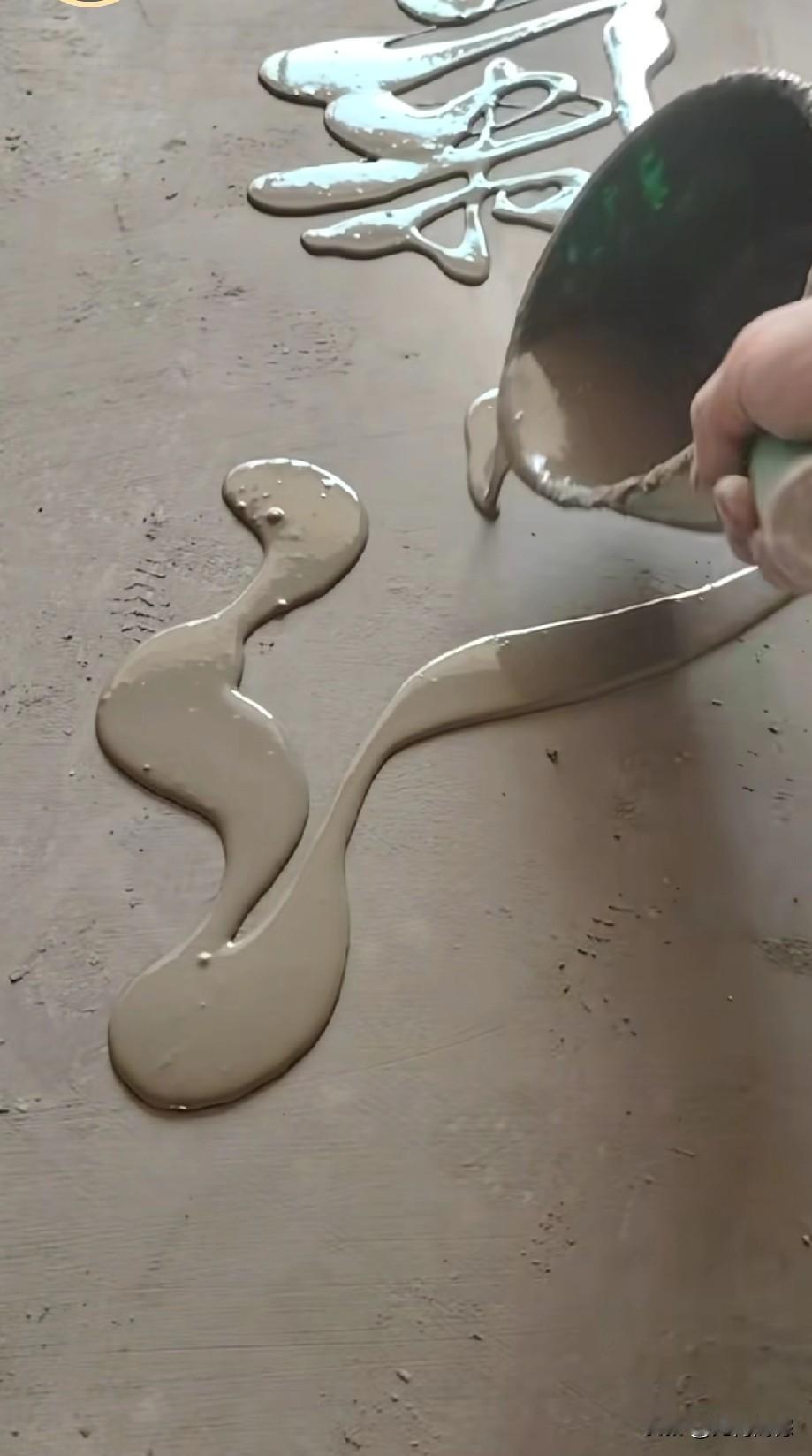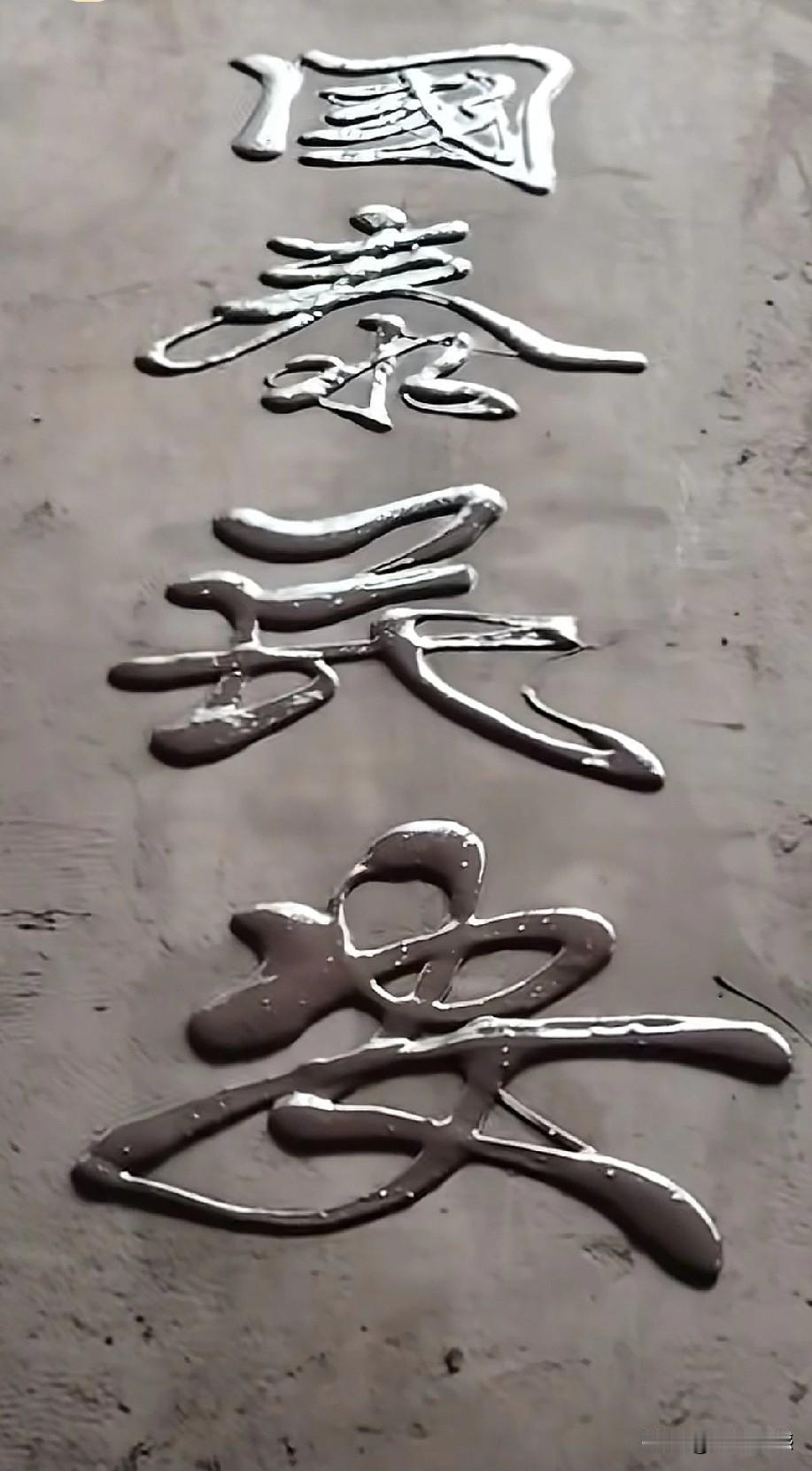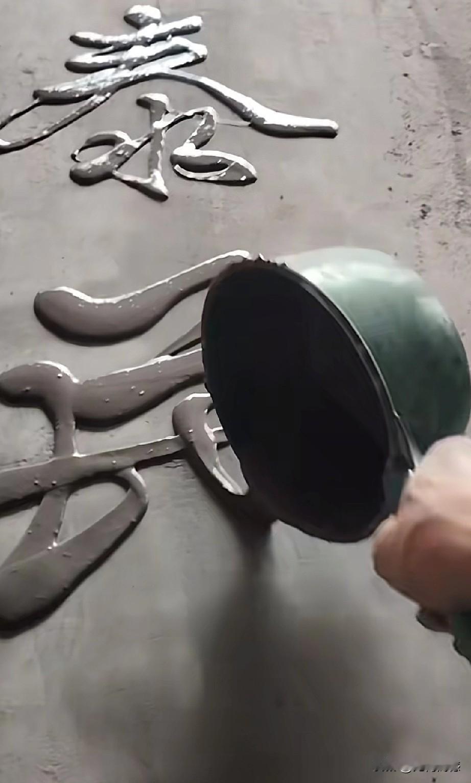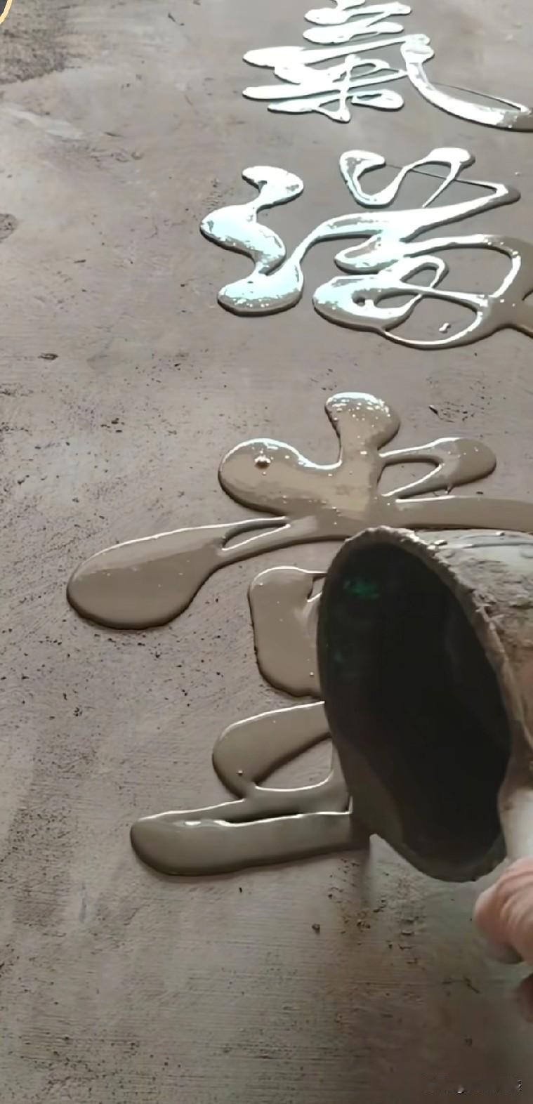 有一种书法叫江湖体,也不知道是谁给命名的,但真正的高手恰恰都在江湖之中!比如有这么个哥们,用水泥写字,字写的非常好,感觉已经达到了书法的高度,这真是高手!这哥们写字不用笔,用个水瓢盛上水泥浆,直接把这些水泥浆洒在地上,形成绝妙的书法作品,真无法想象,他这会好字是如何练成的,首先可以肯定的是,他用笔写字也一定写的非常漂亮,但是用水泥浆写字难度则更大,手上的力道,笔划的粗细,必须要掌握好,细细想来,这真是太难了,为这个书法高手点赞!