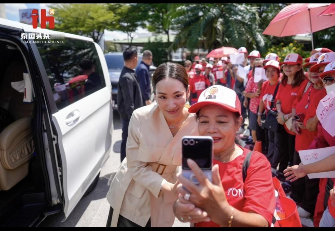 实际上,西那瓦家族的萍通塔更谦和低调。她脸型是瓜子脸,五官凑一起更显柔美,俊俏。主要是她更低调些,她探望狱中父亲,每次都是匆匆来,和粉丝啥也不说飞速离开,但是,她会和红衫军会热情打招呼,聊天,还会拍照合影。 萍通塔也会打扮,今日探视父亲时她的着装非常大气时尚,白色上衣,灰色半身裙,飘飘逸逸,丸子头型显得贵气迷人。 商业的领军人物,家族经济支撑着,萍通坦既美丽又有智慧,真的是女强人!