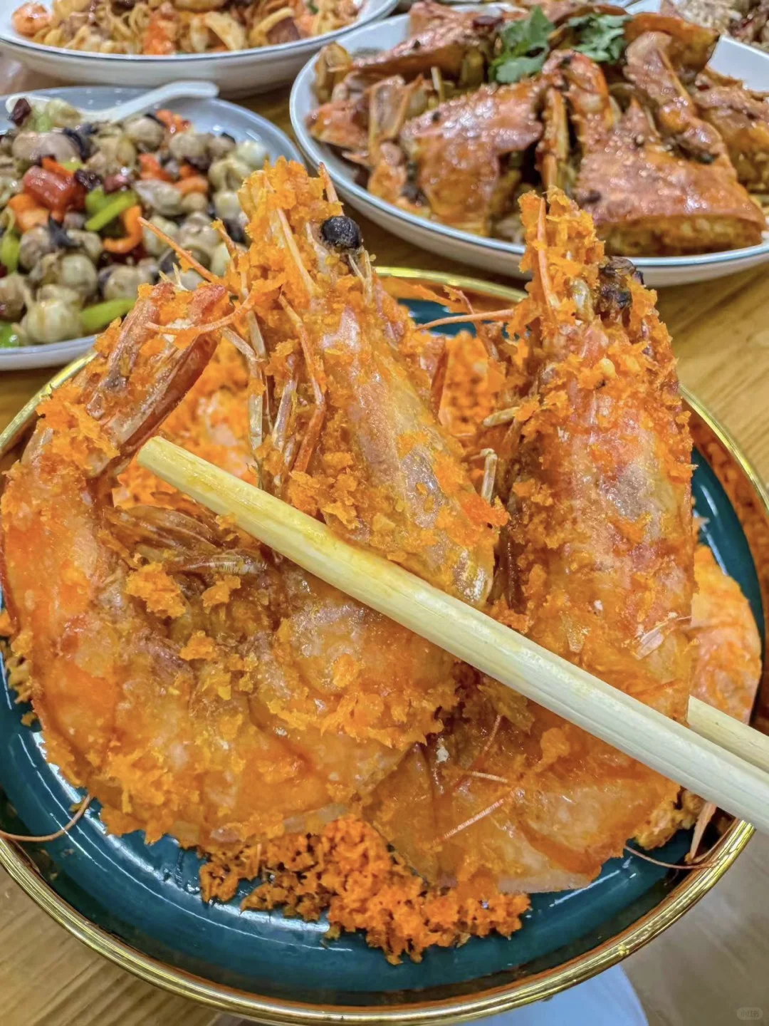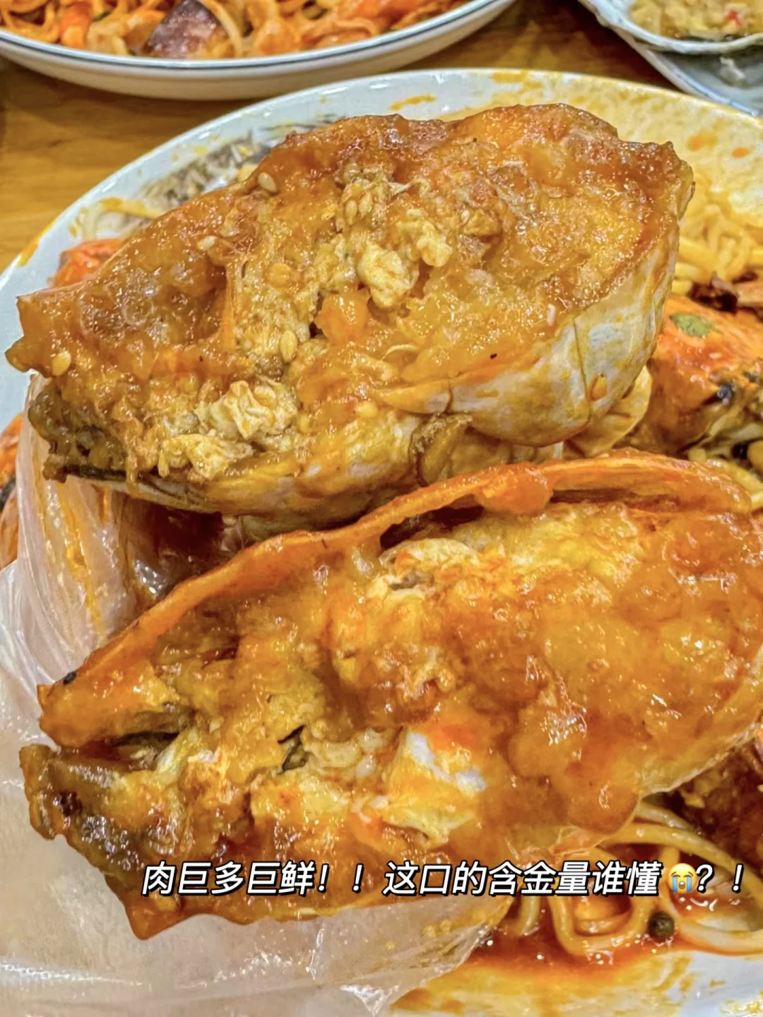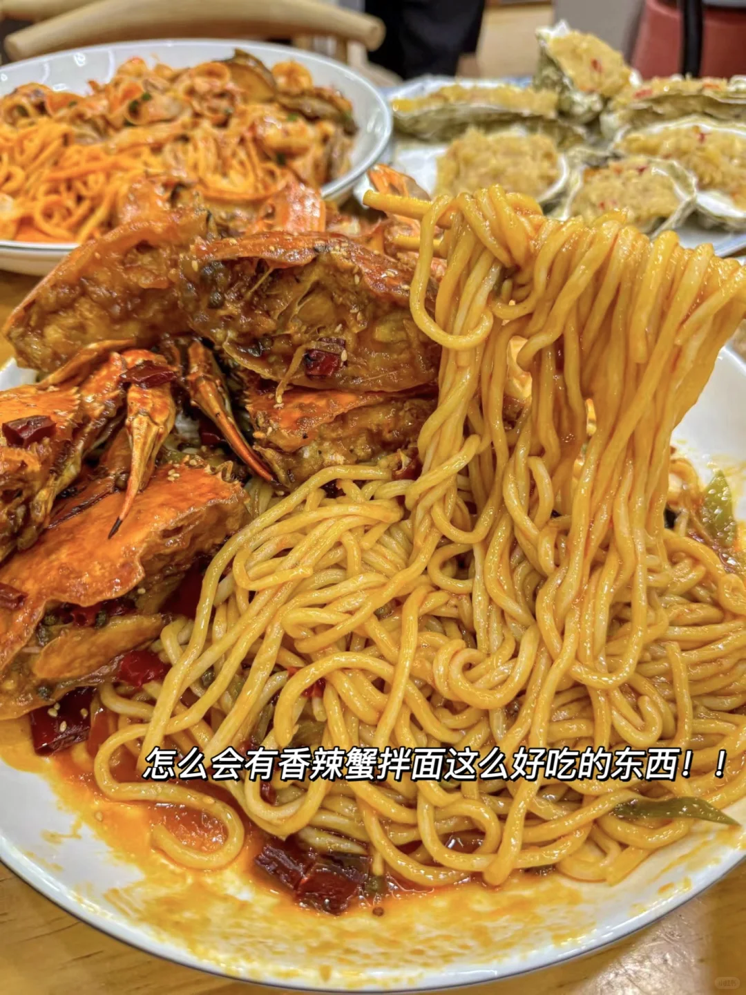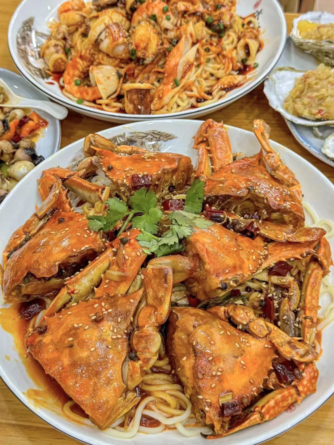 椒盐虾虎巨巨巨大一个!肉好鲜嫩回味鲜甜,真的只有在青岛才能吃到这么正宗的口感吧😭我们还点了辣炒鱿鱼嘴、香辣蟹拌面、避风塘炒虾…都好好吃!