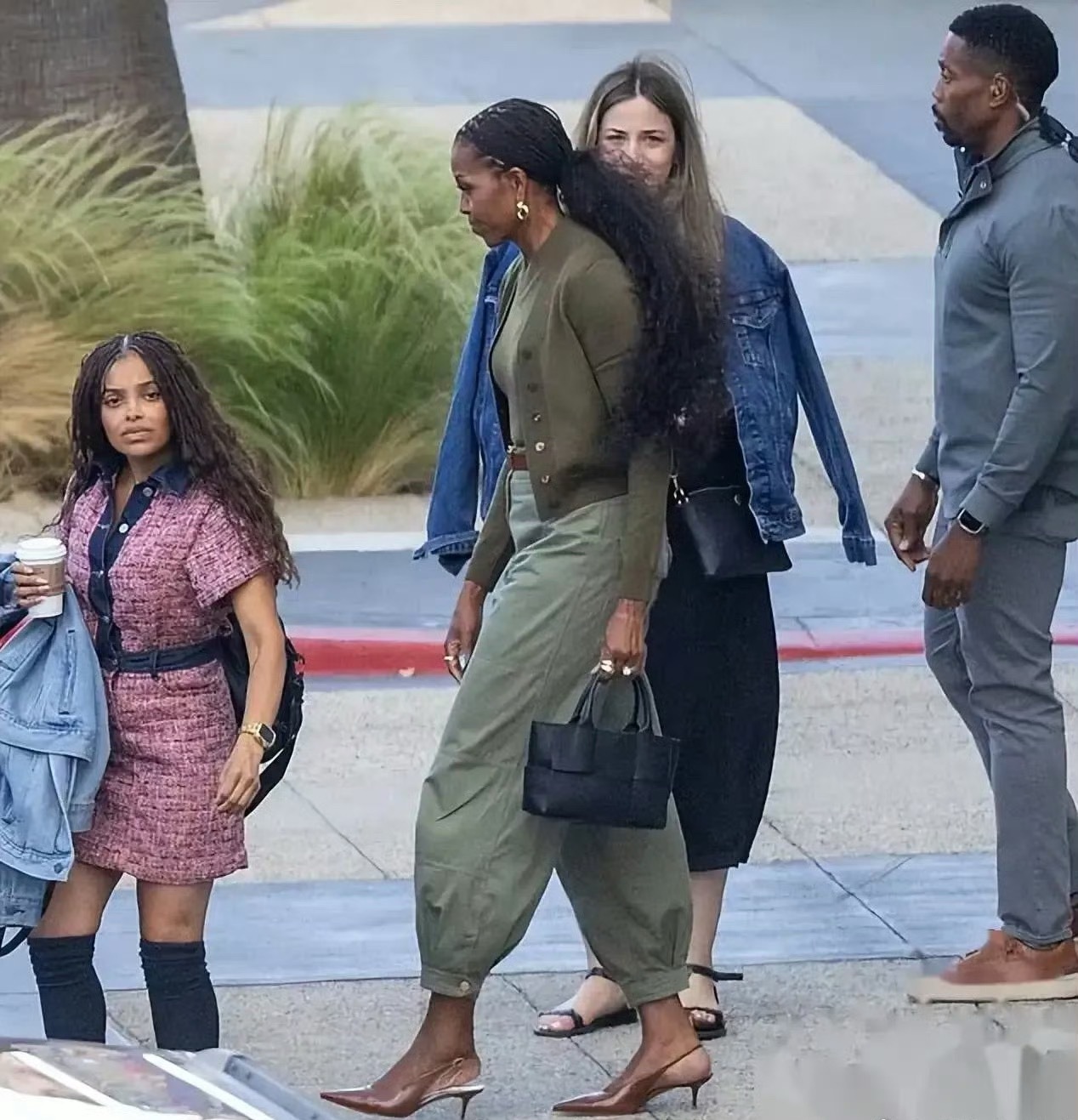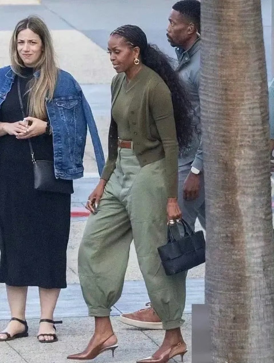 奧巴马夫人米歇尔洛杉矶街拍:180身高的她,穿萝卜裤,高跟鞋,配2万元包包,爆炸头马尾甩得比二十年前还迷人